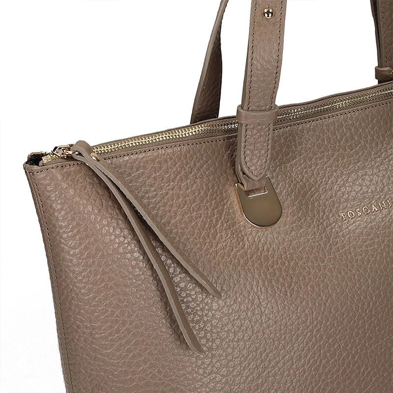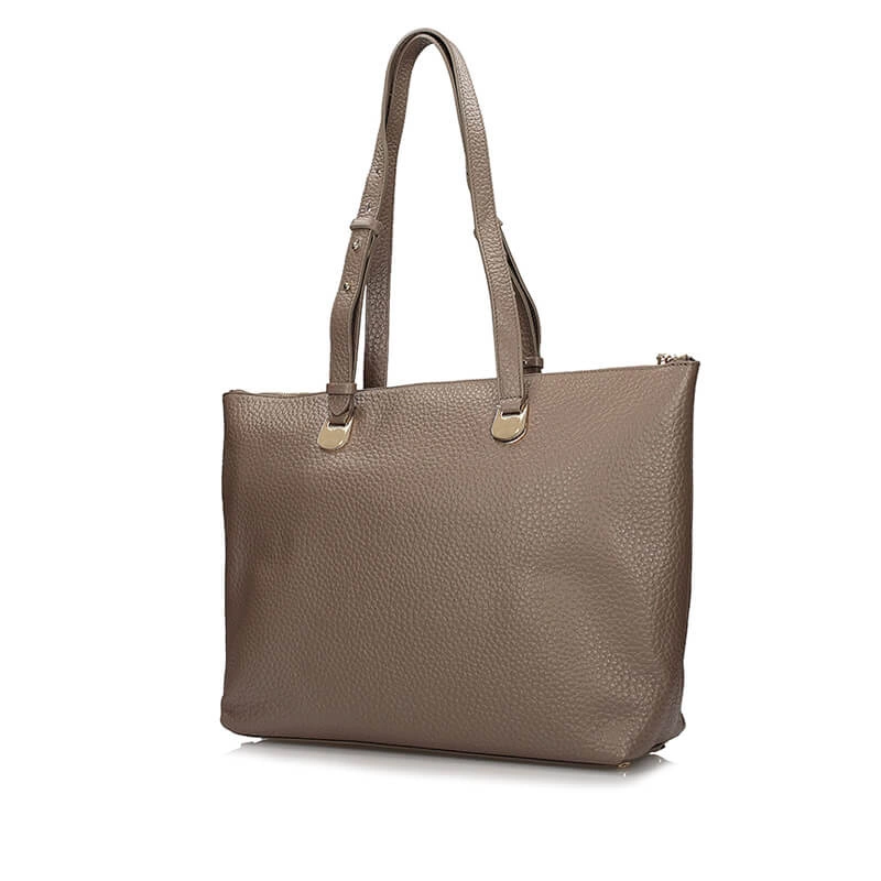 Duża torebka Toscanio pochodząca z najnowszej kolekcji jesienno-zimowej. Fason wykonany z wysokiej jakości skóry naturalnej w kolorze beżowym. Model jednokomorowy, zapinany na zamek. Wewnątrz znajdują się dwie małe kieszonki na drobne rzeczy. Torebkę można nosić w ramieniu. Dzięki klasycznemu kolorowi można dopasować do wielu stylizacji.