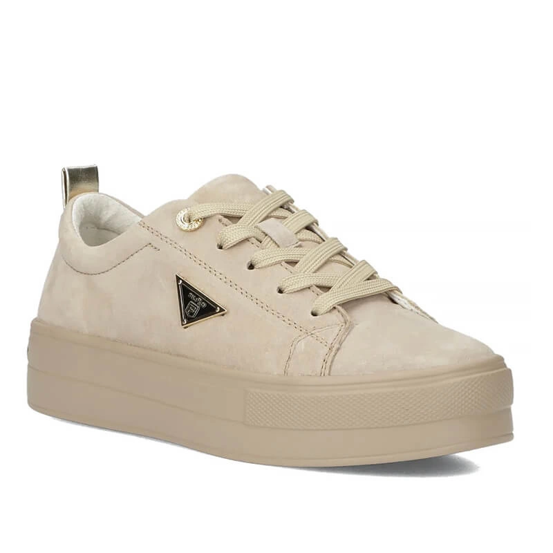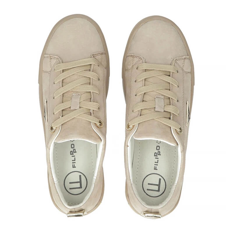 • Półbuty damskie Filippo DP3533/26 beżowe sneakersy sznurowane skórzane