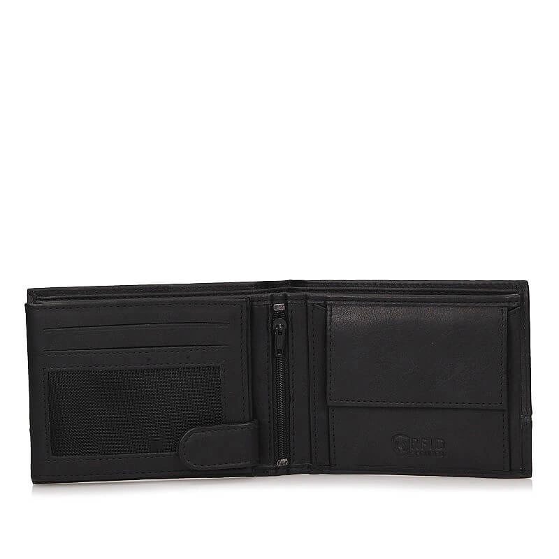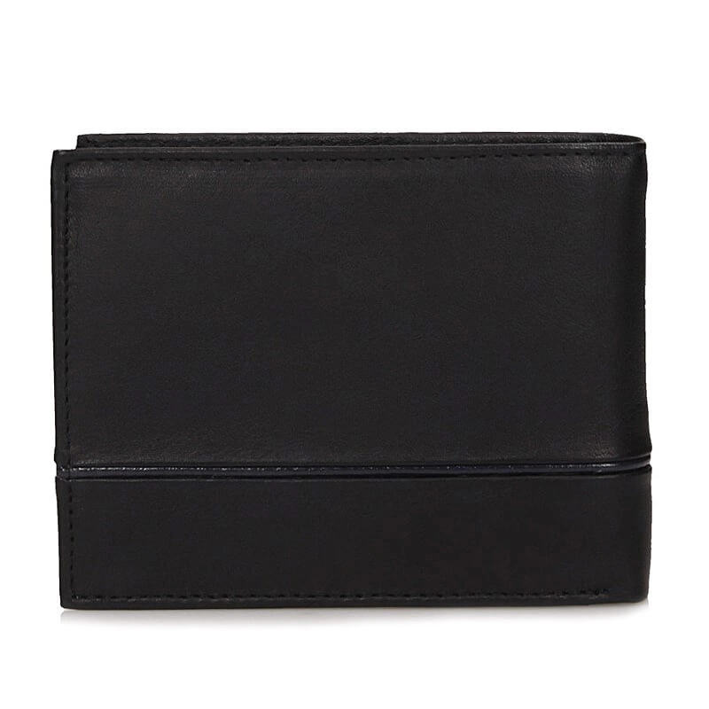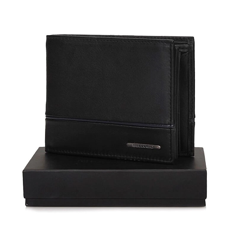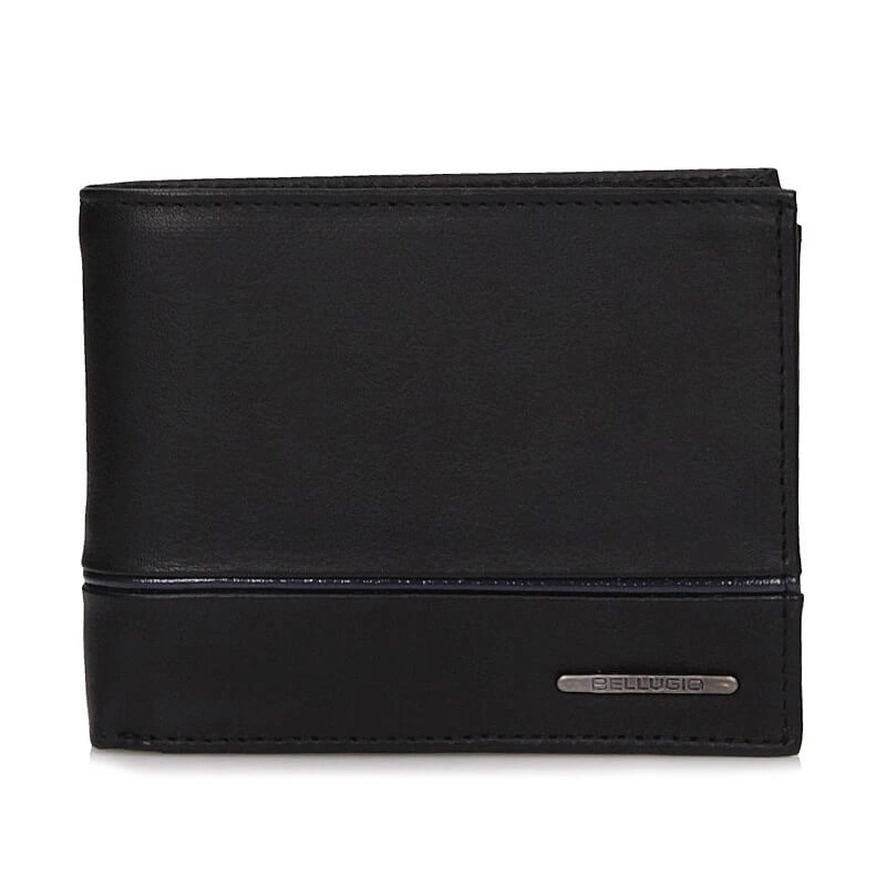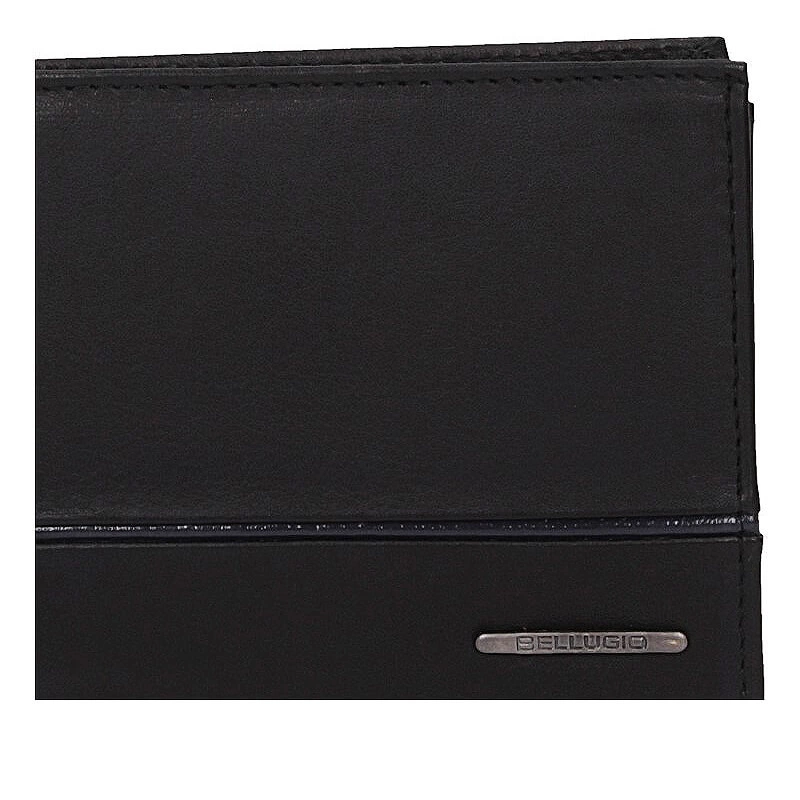 Męski portfel marki Bellugio pochodzący z najnowszej kolekcji jesienno-zimowej. Model wykonany z najwyższej jakości skóry naturalnej w kolorze klasycznej czerni. Wewnątrz znajduje się miejsce na karty kredytowe, oraz dwie przegrody na banknoty. Model posiada miejsce na bilon zapinane na zatrzask oraz jedną kieszonkę zapinaną na zamek błyskawiczny. Idealnie sprawdzi się jako prezent.