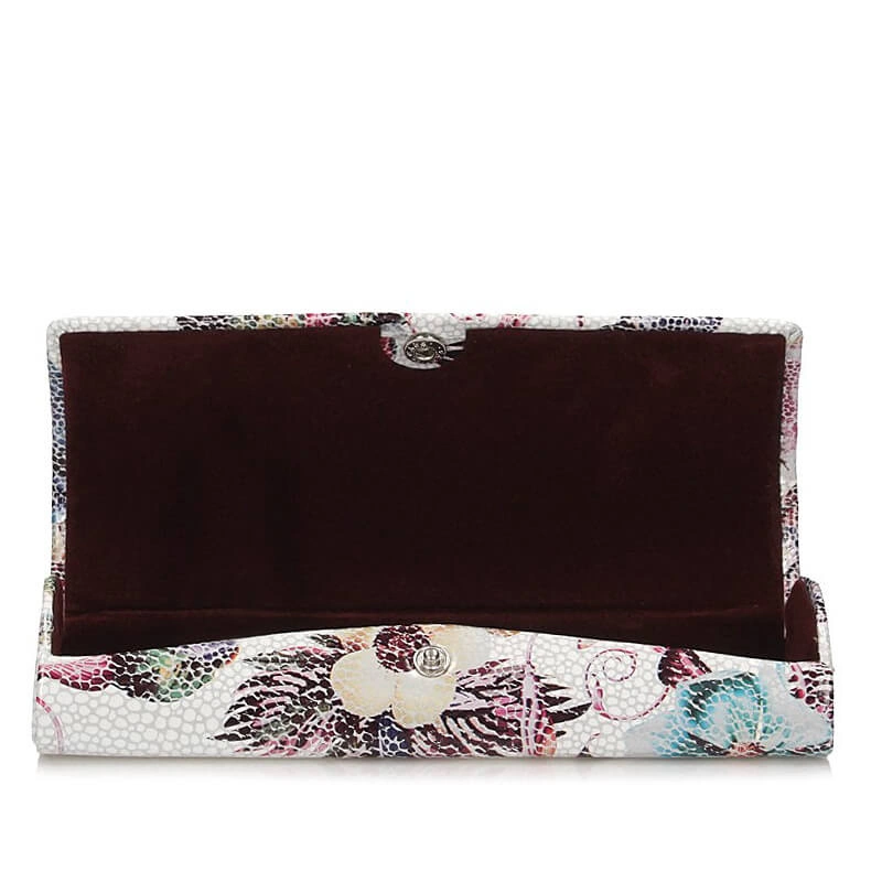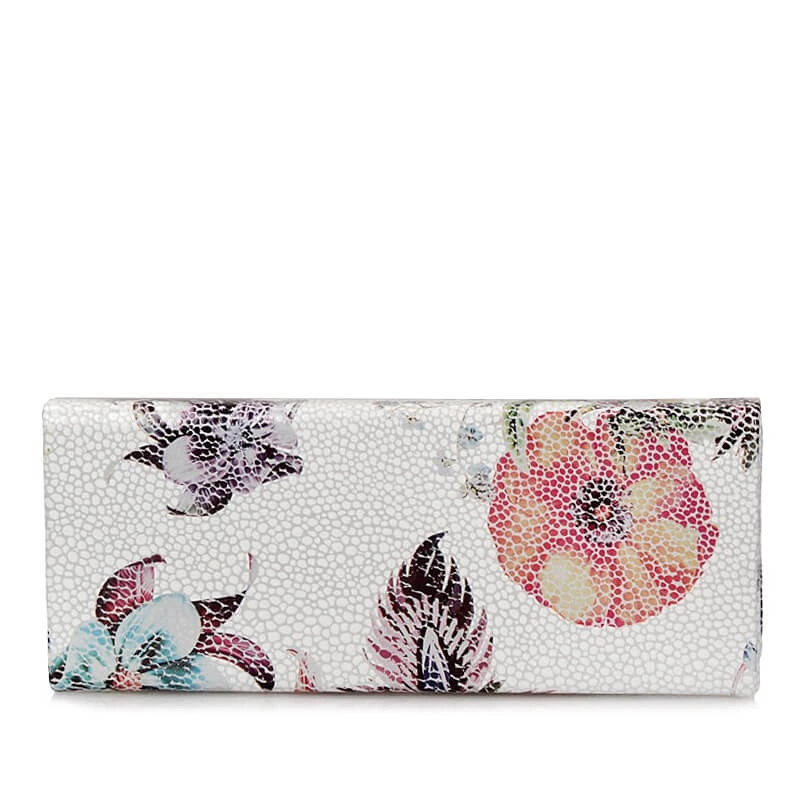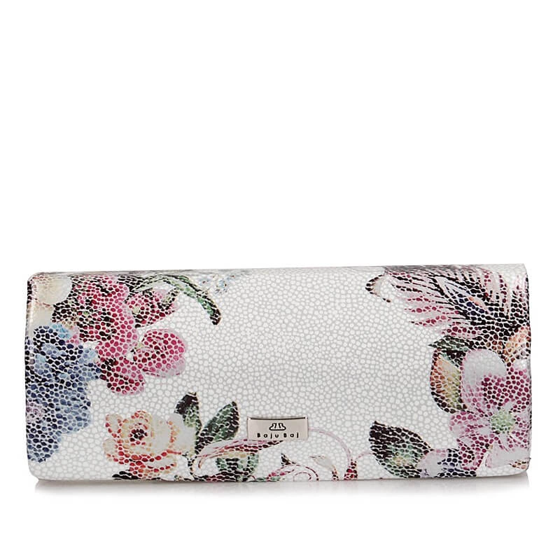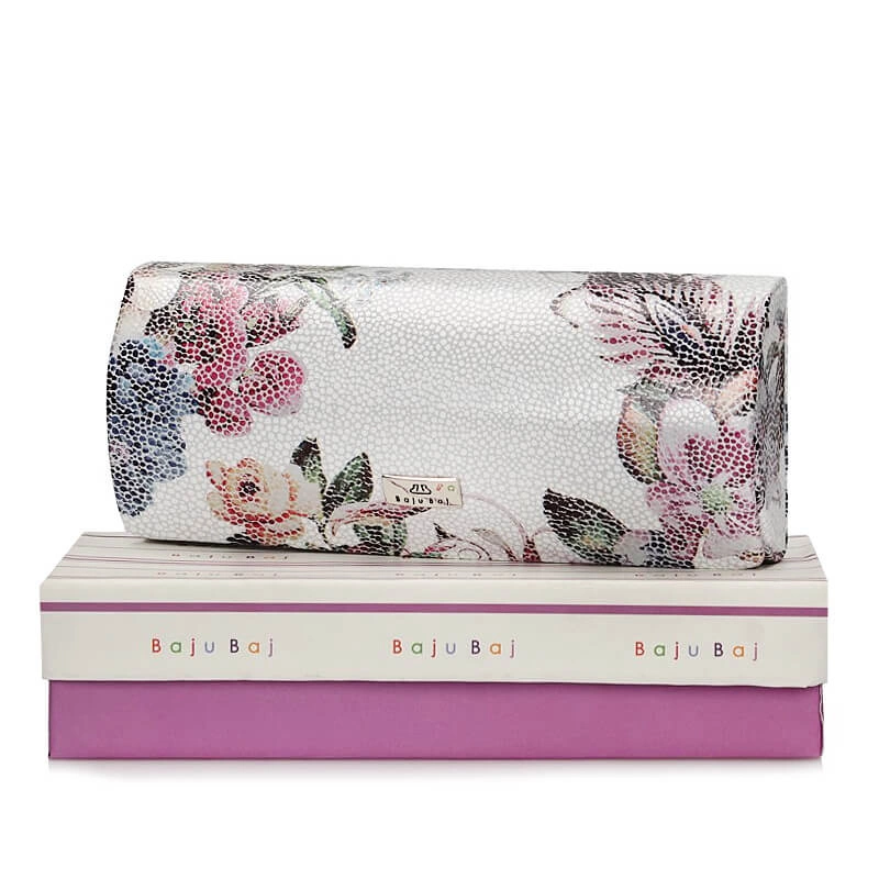 Etui na okulary marki Baju Baj pochodzące z najnowszej kolekcji jesienno-zimowej. Wykonane z naturalnej skóry w jasnym kolorze z ozdobionymi kwiatami. Zapinane na wygodny i solidny zatrzask. Wnętrze wyściełane aksamitną tkaniną w bordowym kolorze. Świetny pomysł na prezent.