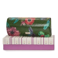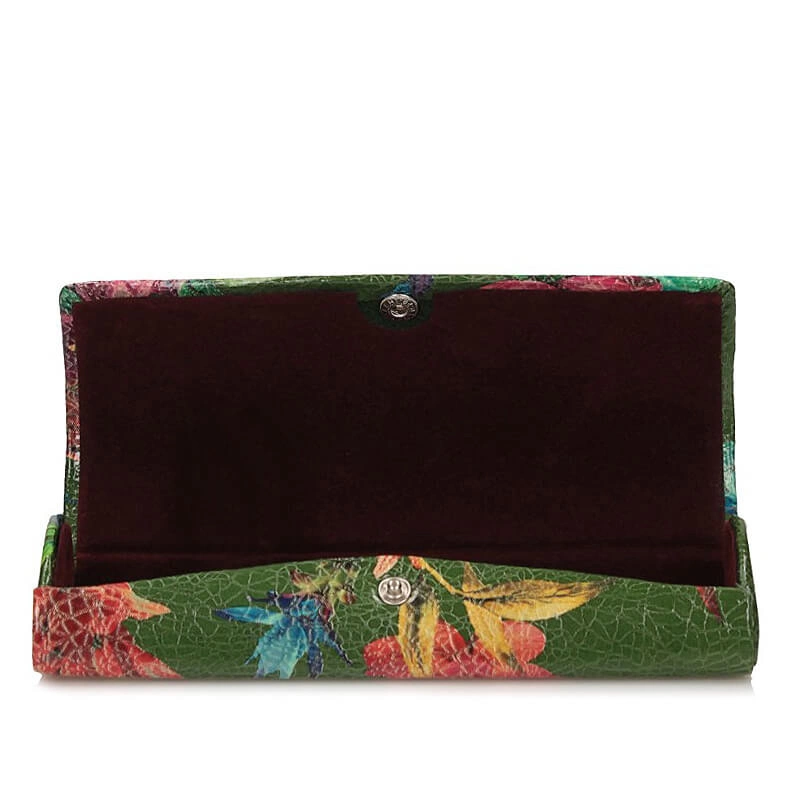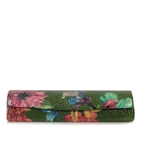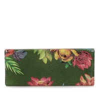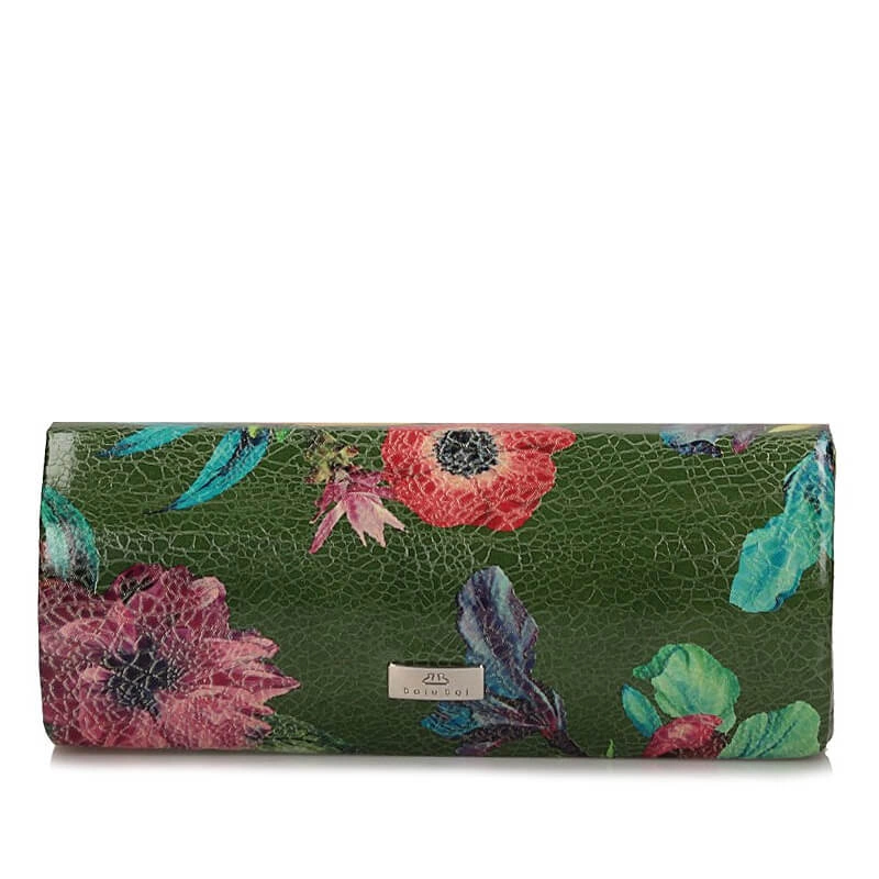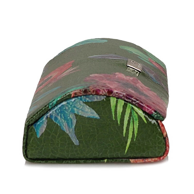 Etui na okulary marki Baju Baj pochodzące z najnowszej kolekcji. Etui zostało wykonane z wysokiej jakości skóry naturalnej w kolorze zielonym z elementami kolorowych kwiatków. Na środku modelu jest znaczek z marką. Portfel idealny na prezent.