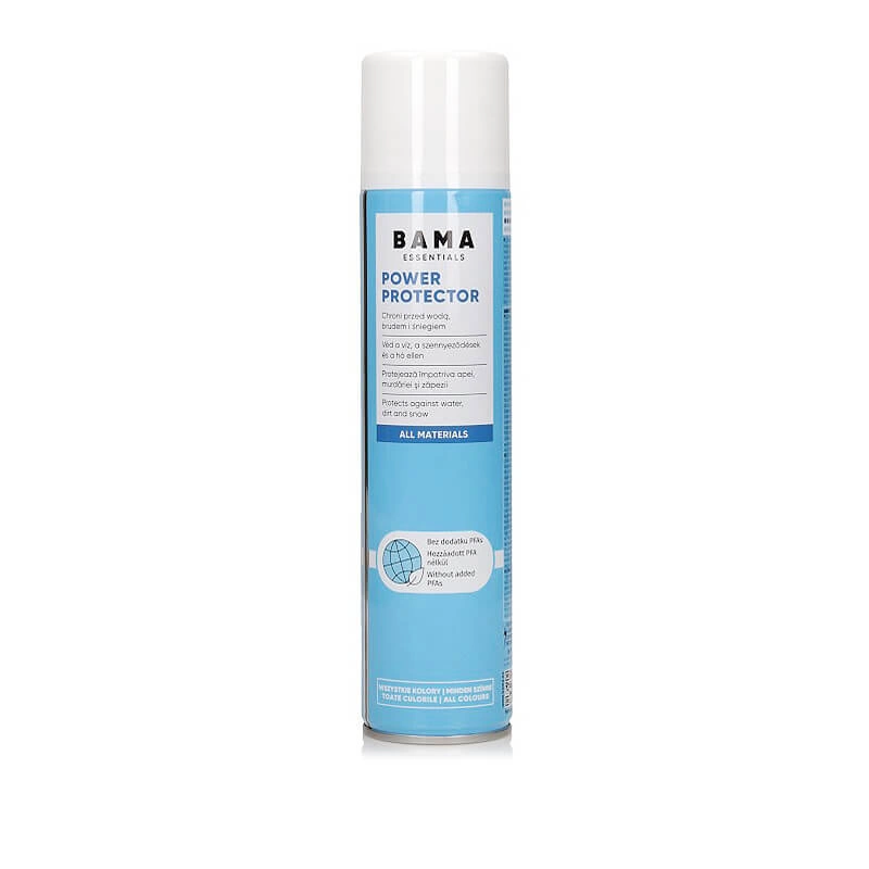 Bama Pawer Protector zapewnia długotrwałą ochronę butów, torebek i odzieży wykonanych z gładkiej skóry, zamszu, nubuku oraz tekstyliów przed wodą, śniegiem i solą. Pozwala zachować właściwości materiałów oddychających. Nie nadaję się do skóry lakierowanej i materiałów metalicznych. W celu zapewnienia najlepszych rezultatów należy stosować regularnie. Produkt nie zawiera prefluorowanych środków chemicznych.