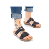 Ceniona marka Rieker prezentuje nam klapki z najnowszej kolekcji. Obuwie te zostało wykonane z wysokojakościowej skóry ekologicznej w klasycznym czarnym odcieniu. Wnętrze obuwia zostało wykonane z wysokiej jakości skóry ekologicznej. Przyjemna dla stopy wkładka wyściełana z miękkiej tkaniny, która zapewni wygodę podczas użytkowania.Model posiada zapięcie na rzep, które umożliwia idealne dopasowanie obuwia do tęgości stopy. Fason całościowo oparty na płaskim obcasie. Podeszwa została wykonana z wysokogatunkowego tworzywa sztucznego. Klapki idealnie się sprawdzą do klasycznych letnich stylizacji.