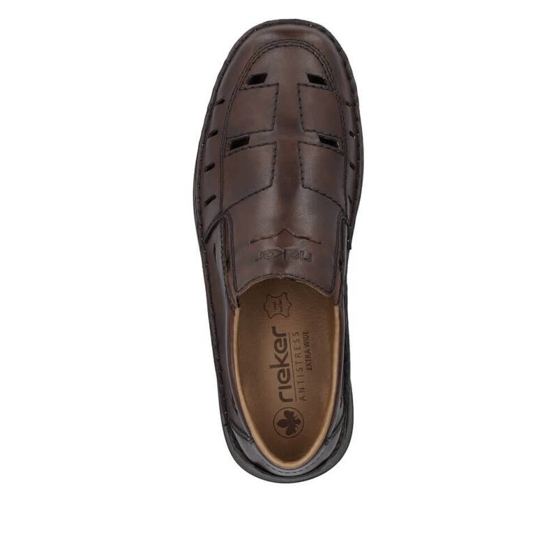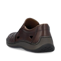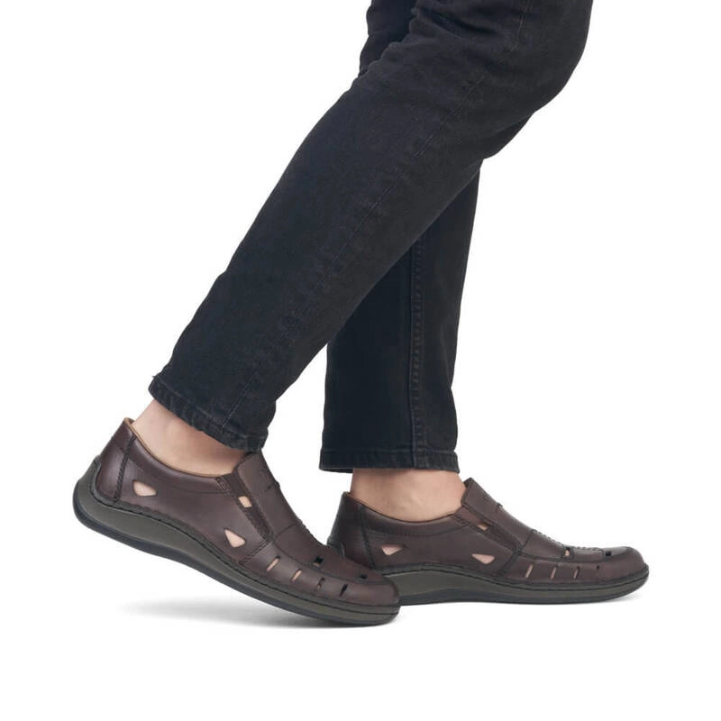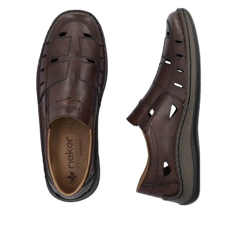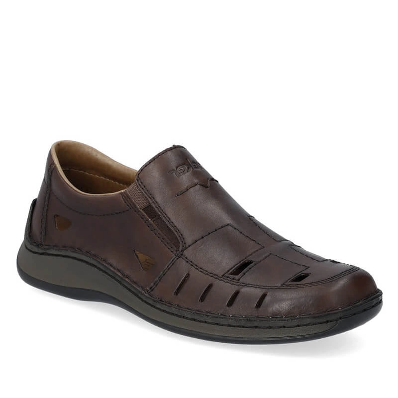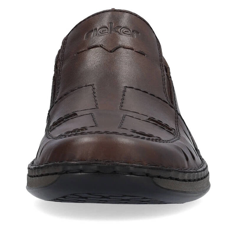 Półbuty niemieckiej marki Rieker pochodzące z najnowszej kolekcji. Cholewka obuwia została wykonana ze skóry naturalnej w brązowym kolorze. Miękka wkładka została wykonana z delikatnej skóry naturalnej, która zadba o maksymalny komfort dla stóp, nawet podczas całodziennego użytkowania. Model wsuwany co pozwala na jego szybkie i bezproblemowe  zakładanie jak i zdejmowanie obuwia. Podeszwa wykonana z wysokogatunkowego tworzywa sztucznego odpornego na ścieranie. Obuwie dzięki swojemu klasycznemu kolorowi dopasujemy do wielu stylizacji wiosenno-letnich.