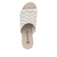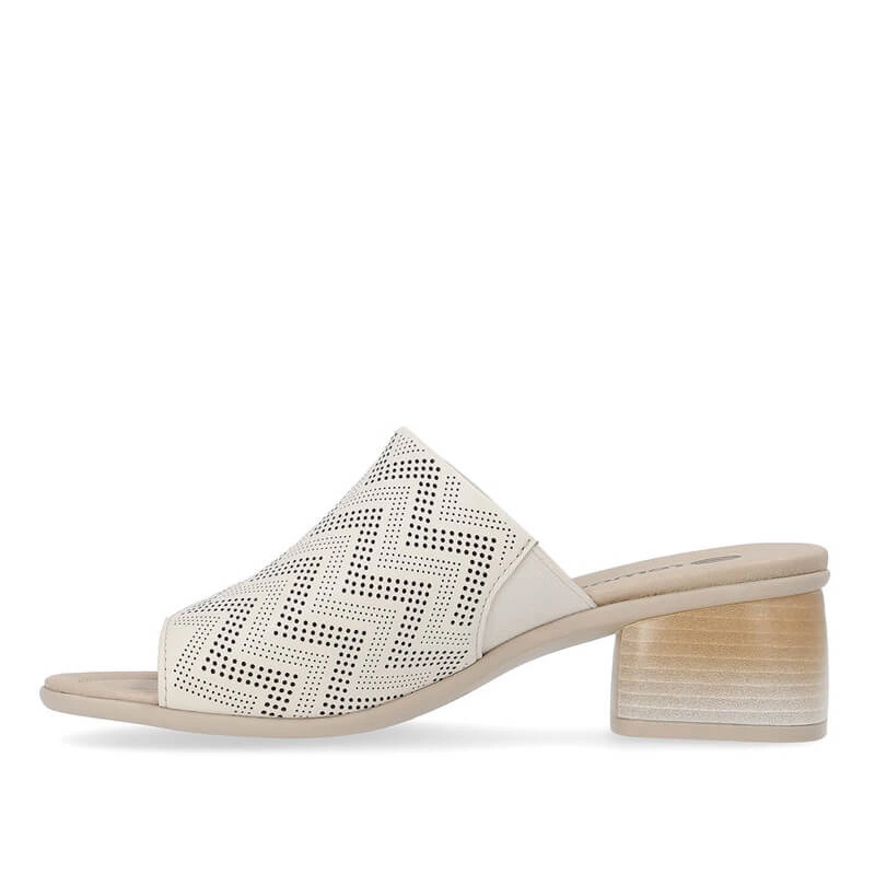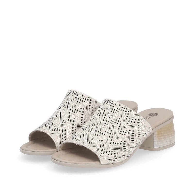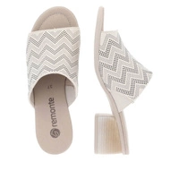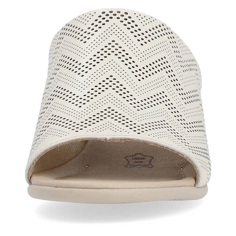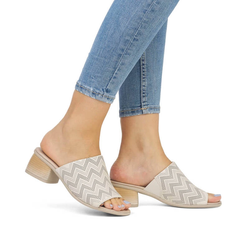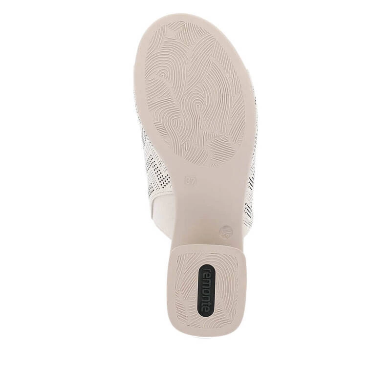 Klapki znanej i cenionej niemieckiej marki Remonte pochodzące z najnowszej kolekcji wiosenno-letniej. Cholewka wykonana została z wysokiej jakości skóry naturalnej w modnym beżowym odcieniu. Wnętrze oraz wkładka zostały wyściełane z miękkiej oraz delikatnej skóry naturalnej. Nosek odkryty. Całość oparto na niewielkim, bezpiecznym obcasie typu klocek. Do wyprodukowania podeszwy zastosowano trwałe, odporne na ścieranie tworzywo sztuczne. Fason został przyozdobiony ciekawym wzorem który z pewnością będzie idealnym wykończeniem nie jednej letniej stylizacji.