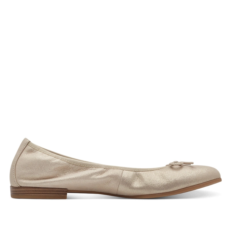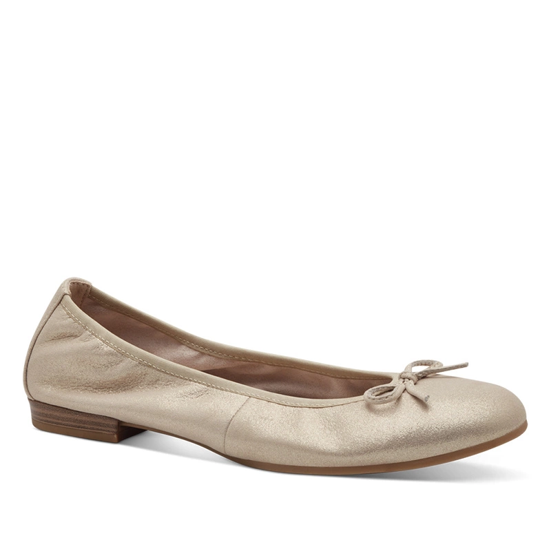 Eleganckie baleriny Tamaris w odcieniu champagne — połączenie gustownego wyglądu z praktycznymi rozwiązaniami, które ułatwiają codzienne noszenie.