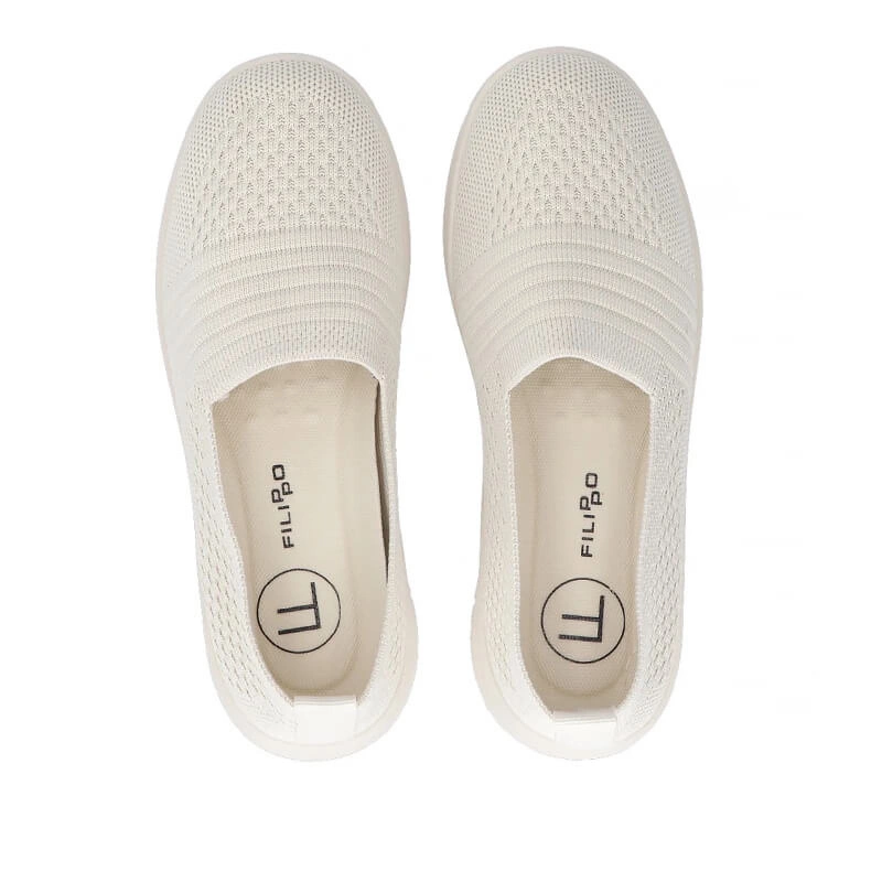 Półbuty znanej marki Filippo pochodzące z najnowszej kolekcji. Obuwie zostały wykonane z tkaniny w kolorze beżowym. Nosek okrągły lekko uniesiony ku górze pozwalający na swobodne rozłożenie palców. Wkładka została wykonana z wysokiej jakości tkaniny. Model wsuwany co pozwala na szybkie zakładanie i ściąganie. Podeszwa wykonana z trwałego tworzywa sztucznego. Dzięki swojemu klasycznemu kolorowi idealnie będą pasować do wielu stylizacji.