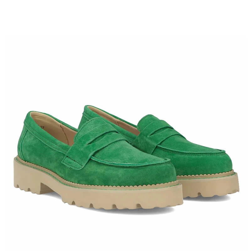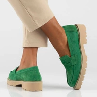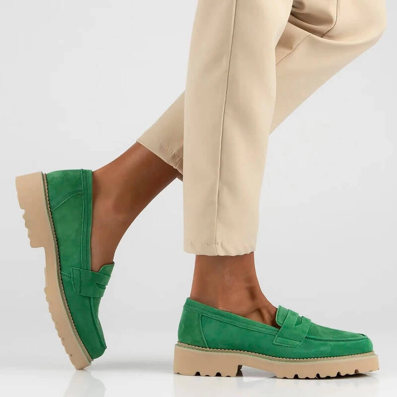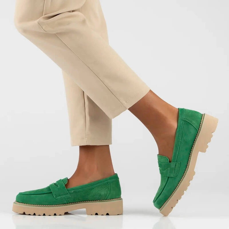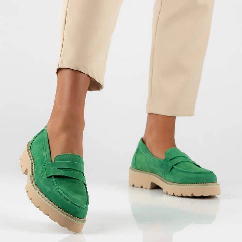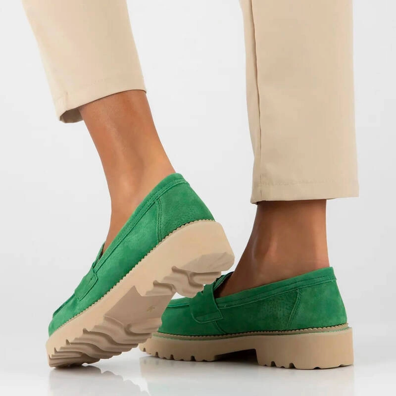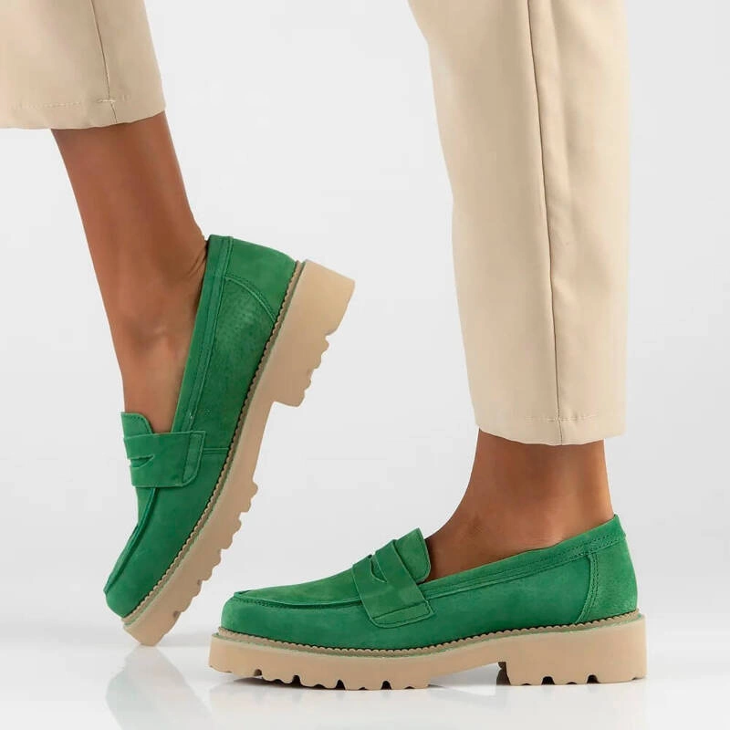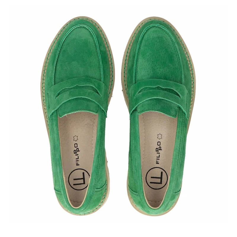 Półbuty znanej i lubianej marki Filippo pochodzące z najnowszej kolekcji. Zostały wykonane z wysokiej jakości skóry naturalnej w kolorze zielonym. Nosek o kształcie migdałowym, pozwalający na swobodne rozłożenie palców. Model wsuwany umożliwiający na jego szybkie zakładanie. Podeszwa 3.5cm obcasem wykonana z tworzywa sztucznego. Idealnie będą pasować do wielu stylizacji.