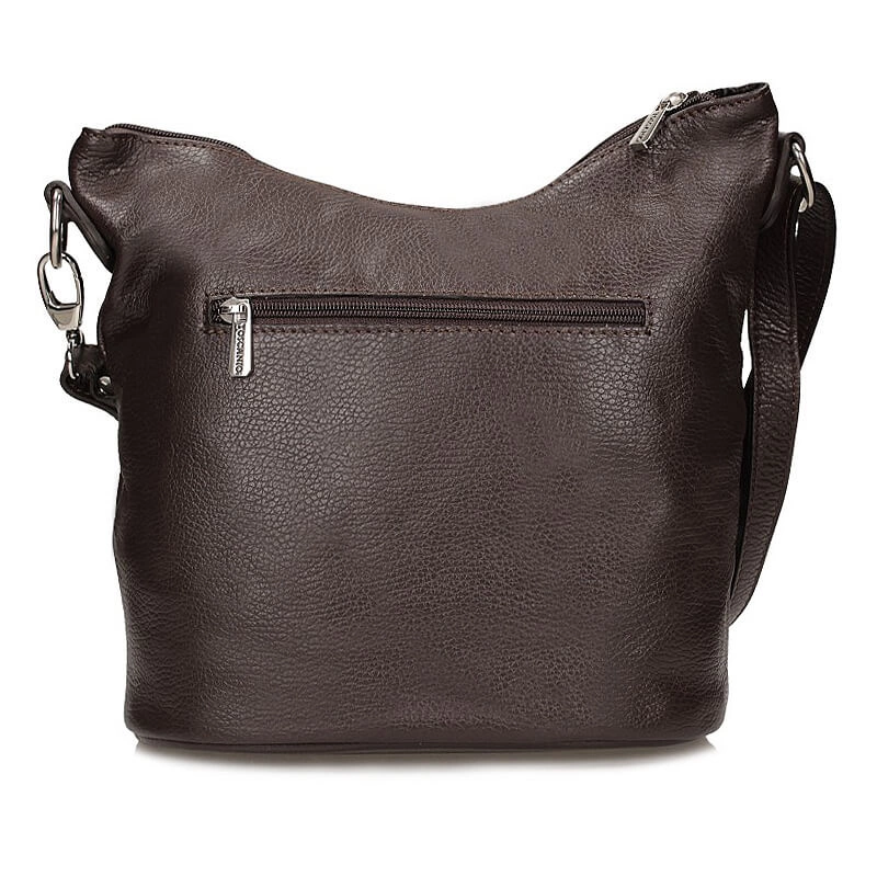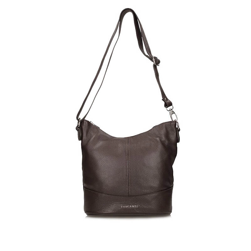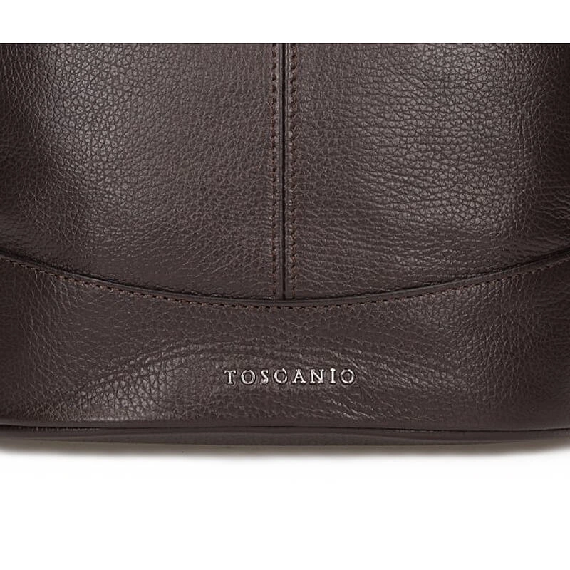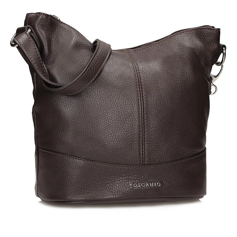 Torebka marki Toscanio pochodząca z najnowszej kolekcji jesienno-zimowej. Torebka została wykonana z wysokiej jakoś skóry naturalnej licowej w kolorze brązowym. Posiada jedną komorę i 5 kieszeni. Model jest zapinany na zamek. Ma możliwość noszenia na ramieniu przez długi pasek dołączony do torebki od producenta. Dzięki swojemu klasycznemu kolorowi można dopasować do wielu stylizacji.