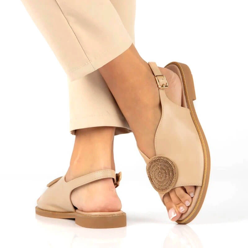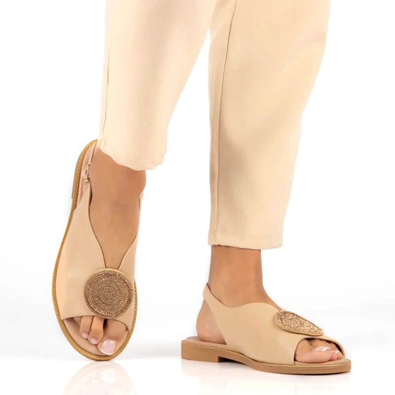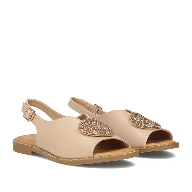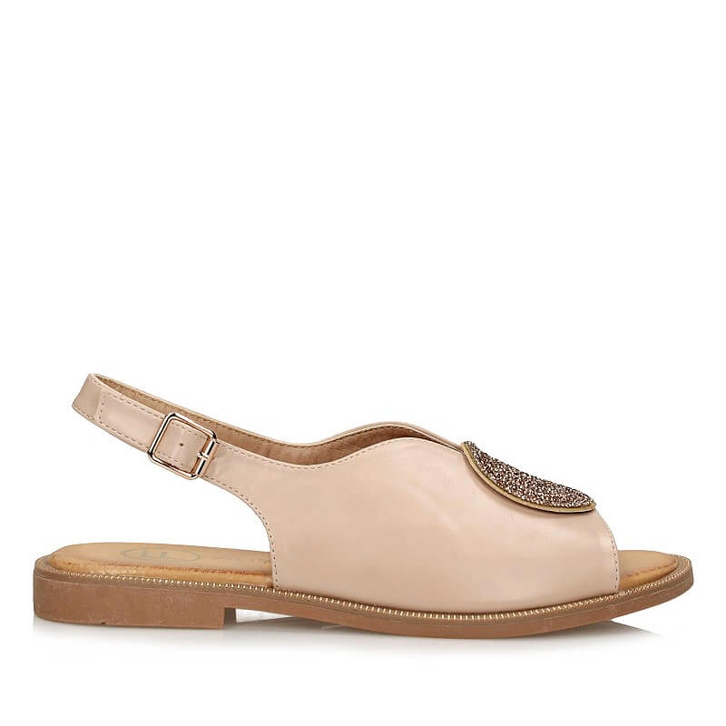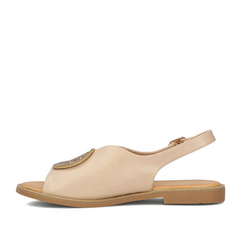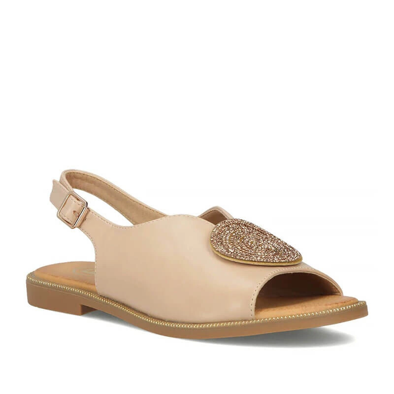 Sandały renomowanej marki Filippo pochodzące z najnowszej kolekcji. Cholewka została wykonana z wysokiej jakości skóry ekologicznej licowej w kolorze beżowym. Nosek obuwia okrągły pozwalający swobodnie rozłożyć palce. Wkładka została wykonana ze skóry naturalnej. Model zapinany na sprzączkę. Obuwie ozdobione modnymi w tym sezonie dżetami. Podeszwa wykonana z trwałego tworzywa sztucznego. Sandały idealnie będą pasować do wielu stylizacji wiosenno-letnich.
