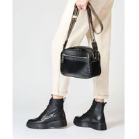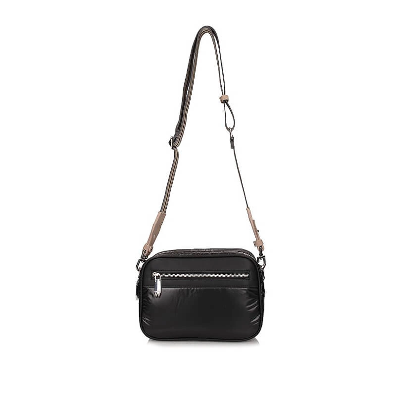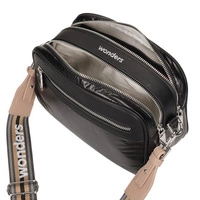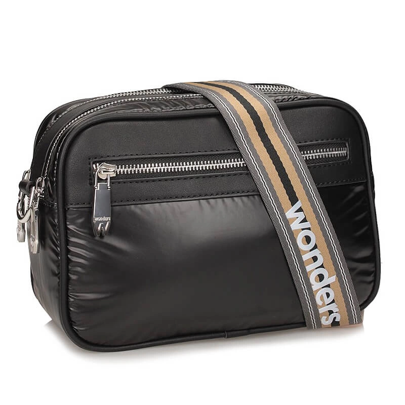 Hiszpańska znana marka Wonders prezentuje nam najnowszy model listonoszki z kolekcji jesienno-zimowej. Model wykonany z myślą o kobietach chcących się wyróżniać oraz modnie, oryginalnie wyglądać. Firma cechuje się dbałością o nawet najmniejszy szczegół oraz wysokojakościowymi materiałami z którego wykonywane są ich produkty. Model całościowo wykonany z wysokiej jakości skóry ekologicznej w klasycznym czarnym kolorze. Wnętrze wyłożone jasną tkaniną z czerwonymi elementami. Fason posiada dwie główne komory zamykane na błyskawiczny zamek oraz jedną mniejszą kieszeń znajdującą się na przodzie torebki. Torbę zdobi ciekawy motyw oraz znaczek logo marki. Długi regulowany pasek pozwoli na noszenie torebki według własnych potrzeb i upodobnień. Listonoszka może stać się idealnym uzupełnieniem naszych stylizacji. Nie może jej zabraknąć w twojej szafie!