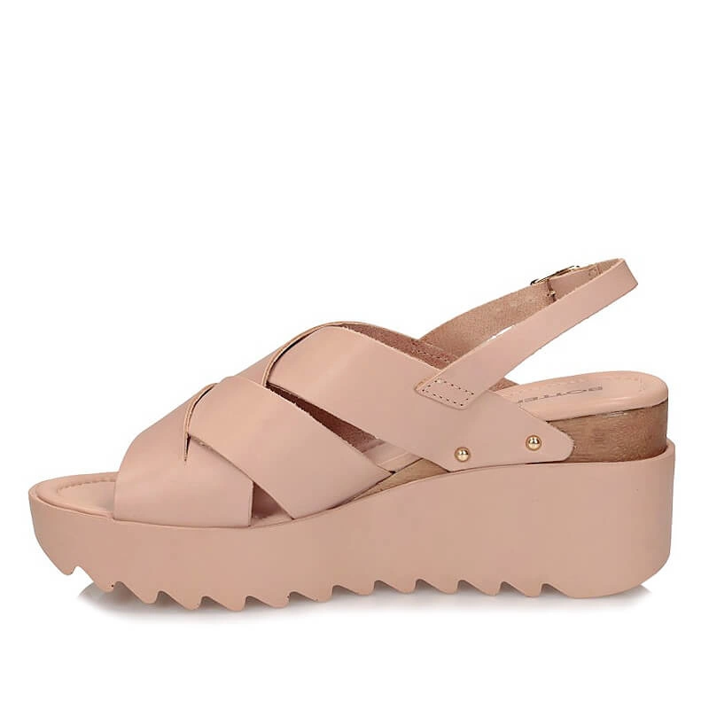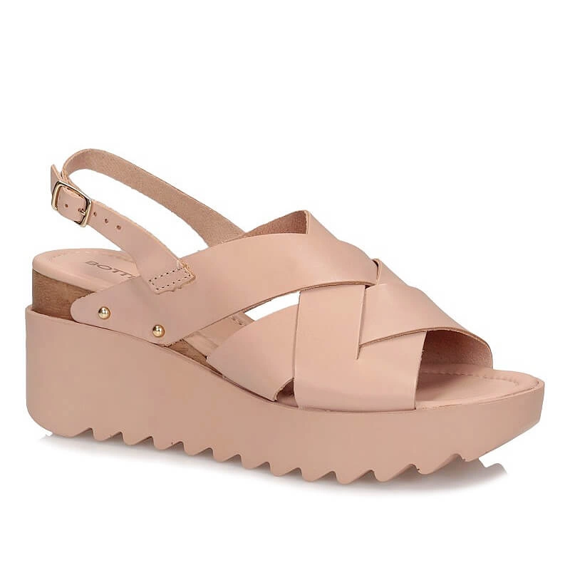 Sandały marki Bottero pochodzące z najnowszej kolekcji wiosenno-letniej. Cholewka obuwia została wykonana z wysokiej jakości skóry naturalnej w kolorze różowym. Model posiada odkryty nosek, który pozwoli swobodnie rozłożyć palce. Natomiast wkładka została wykonana z skóry ekologicznej. Stabilna 7 cm platforma. Model zapinany na regulowaną sprzączkę pozwalający dopasować obuwie do różnej tęgości stopy. Fason został ozdobiony złotymi akcentami. Model idealnie sprawdzi się na wiosenno-letnie stylizacje.
