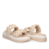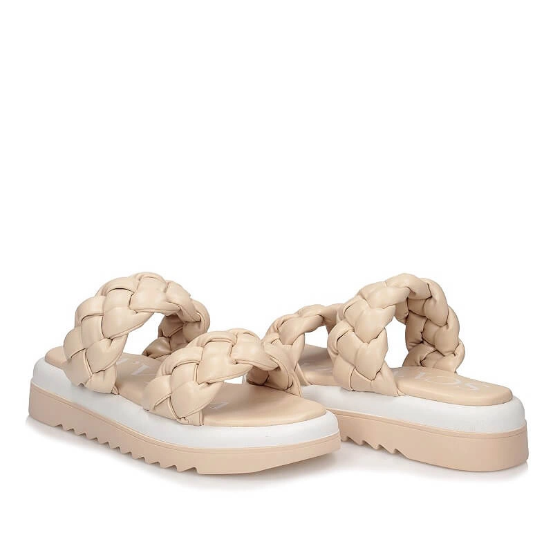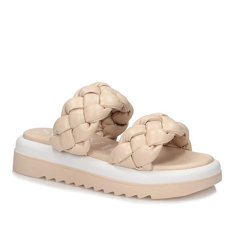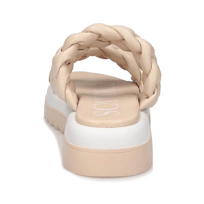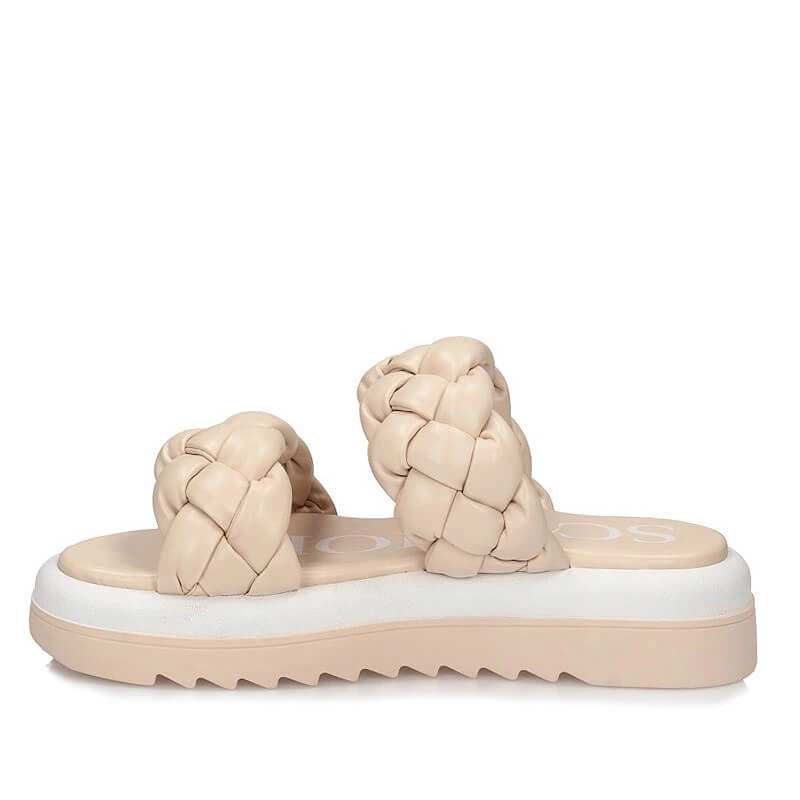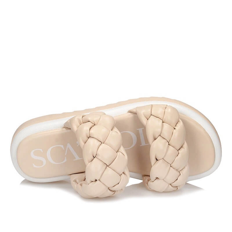 Na nowy sezon wiosenno-letni Sca'viola przedstawia nam model oryginalnego klapka na dwa paski. Obuwie wykonane z elastycznej, ekologicznej skóry ułożonej w ciekawy splot. Paski są szersze dzięki czemu klapek pozostaje stabilny na stopie. Wkładka miękka w jasnym kolorze z ekologicznej skóry. Świetne uzupełnienie wielu stylizacji - idealnie skomponuje się z sukienkami lub jeansami. Uwagę warto zwrócić na ciekawą dwukolorową podeszwę. Łatwe i szybkie w zadbaniu o czystość. Idealne do wielogodzinnego użytkowania bez poczucia obciążenia stóp.