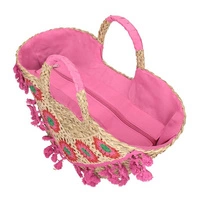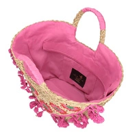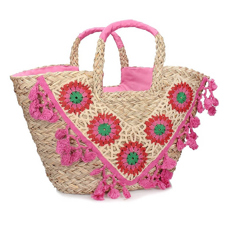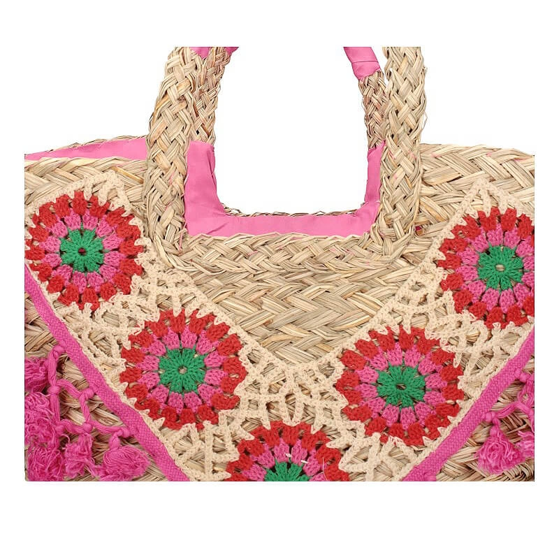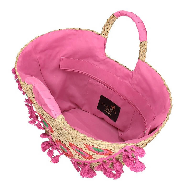 Kosz znanej i cenionej marki Sca'viola pochodzący z najnowszej kolekcji wiosenno-letniej został wykonany ze słomy, natomiast w środku wyścielony został wysokogatunkowym materiałem tekstylnym w pięknym różowym odcieniu. Na przodzie kosza umieszczono haft ze zwisającymi frędzlami. Dzięki tylu kolorom pobudzi on naszą wyobraźnię i z całą pewnością doda energii. Kosz posiada jedną ogromną komorę zapinaną na solidny zamek, a wewnątrz niej dodatkową kieszonkę. Dodatkowym atutem jest solidny i duży uchwyt, dzięki czemu torebkę możemy w dłoni jak i nosić na ramieniu. Ten model świetnie sprawdzi się przy letnich stylizacjach.