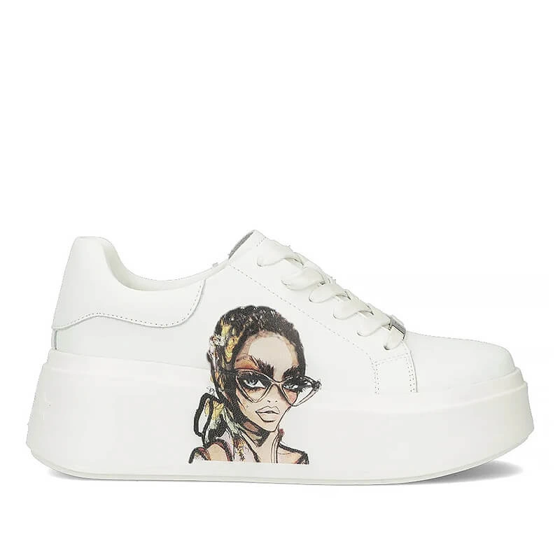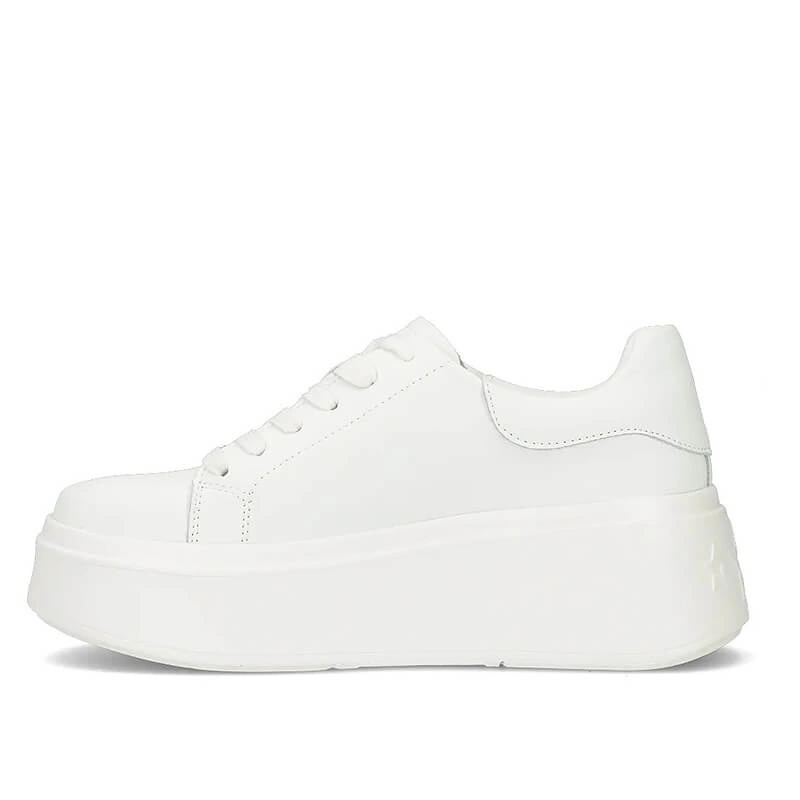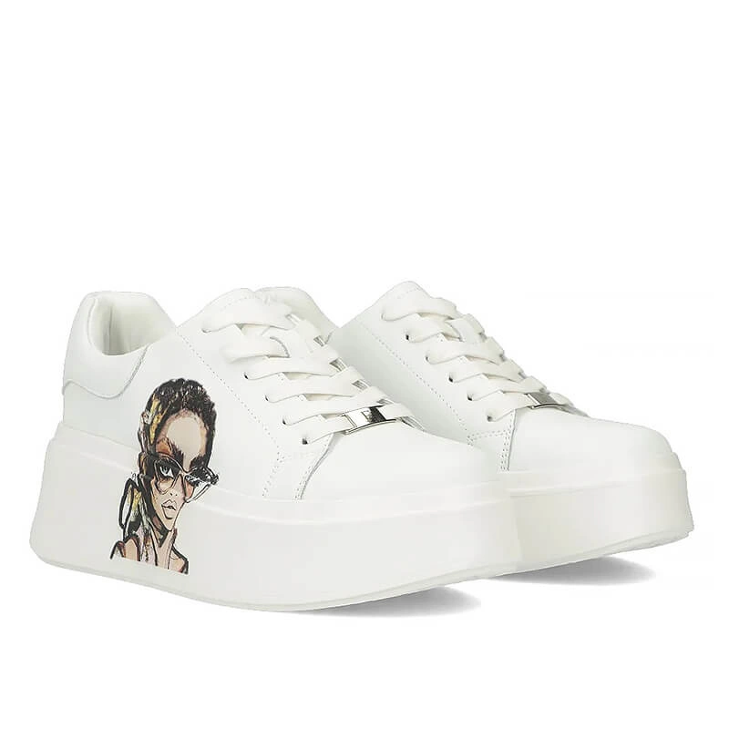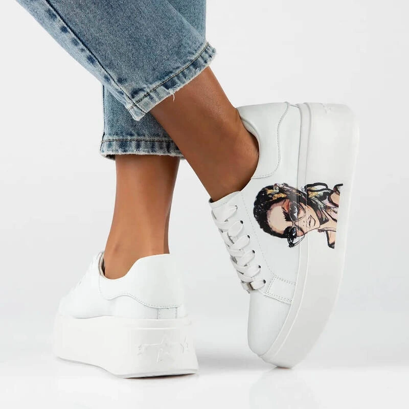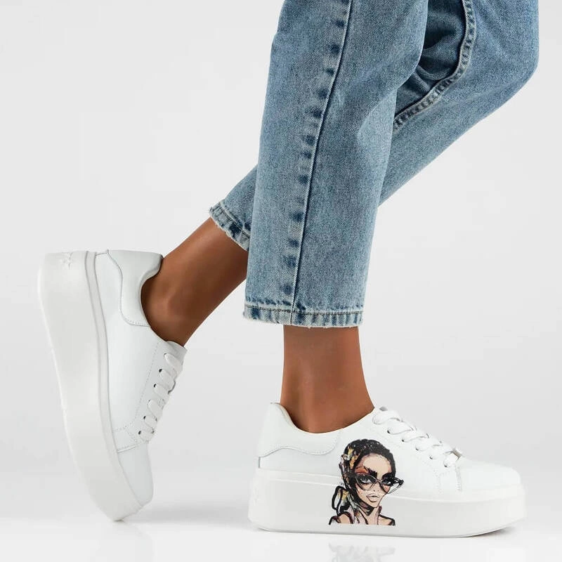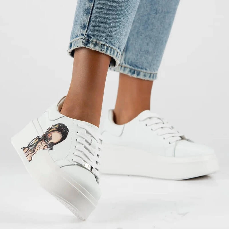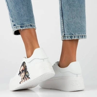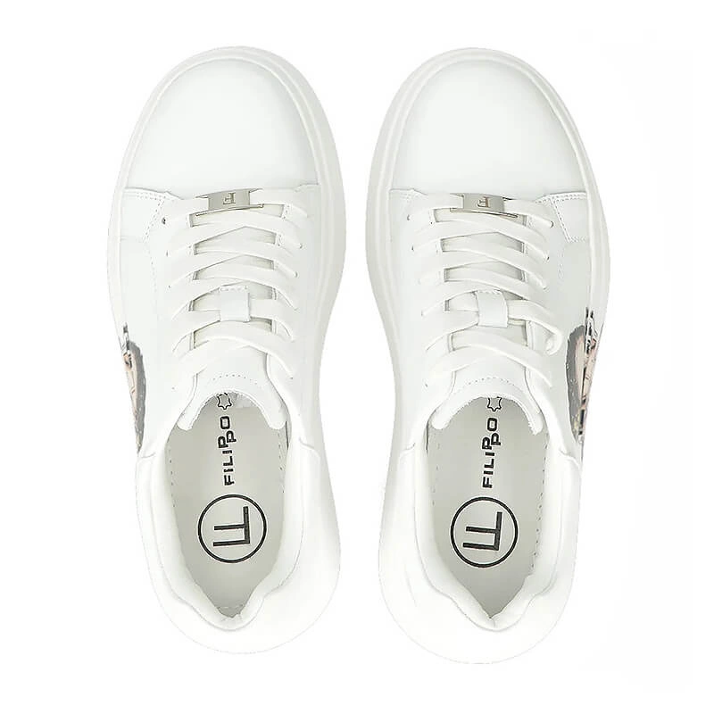 Sneakersy znanej i cenionej przez klientów marki Filippo pochodzące z najnowszej kolekcji wiosenno-letniej. Cholewka jak i wkładka wykonane są ze skóry naturalnej licowej w pieknym białym kolorze. Natomiast wnętrze buta wykonano z najwyższej jakości tkaniny. Model osadzony został na 6 cm platformie. But sznurowany jest na 6 dziurek, co umożliwia dopasowanie do tęgości stopy. Zaokrąglony nosek pozwoli na wygodne rozłożenie stopy.  Nadruk na bucie sprawia, że nie jest on nudny i nadaje mu charakteru.