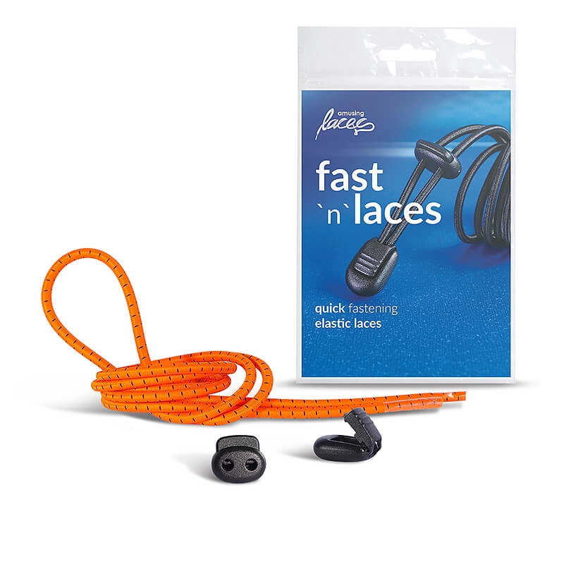 Sznurowadła płaskie Kaps pomarańczowe. Elastyczne sznurowadła do szybkiego wiązania obuwia. W szybki i niezawodny sposób pomagają utrzymać obuwie na stopie, bez konieczności każdorazowego wiązania sznurowadeł. Wykonane z kilku mocnych elastycznych gumek oplecionych otoczką oraz dwóch elementów mocujących dzięki którym, tylko jeden ruch utrzyma sznurowadła we właściwym położeniu.