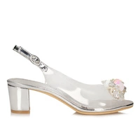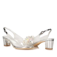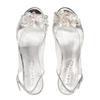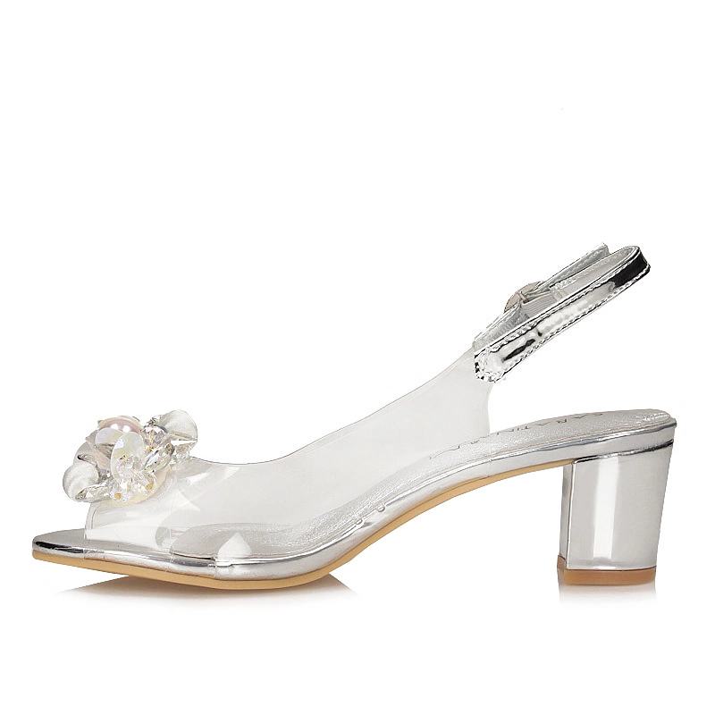 Sandały marki Sabatina pochodzące z najnowszej kolekcji. Model w kolorze srebra wykonany został z wysokiej jakości silikonu. Natomiast wkładka wykonana z miękkiej skóry naturalnej w połączeniu z ekologiczną. Nosek odkryty dzięki czemu możemy swobodnie rozłożyć palce. Szeroki, 6 centymetrowy obcas. Obuwie zapinane na sprzączkę wokół kostki co pozwoli dopasować obuwie do różnej tęgości stopy. Podeszwa trwała, odporna na ścieranie. Umieszczona na cholewce cyrkoniowa ozdoba dodaje obuwiu oryginalnego wyglądu. Ciekawy model sandałków uzupełni wiele kobiecych stylizacji.