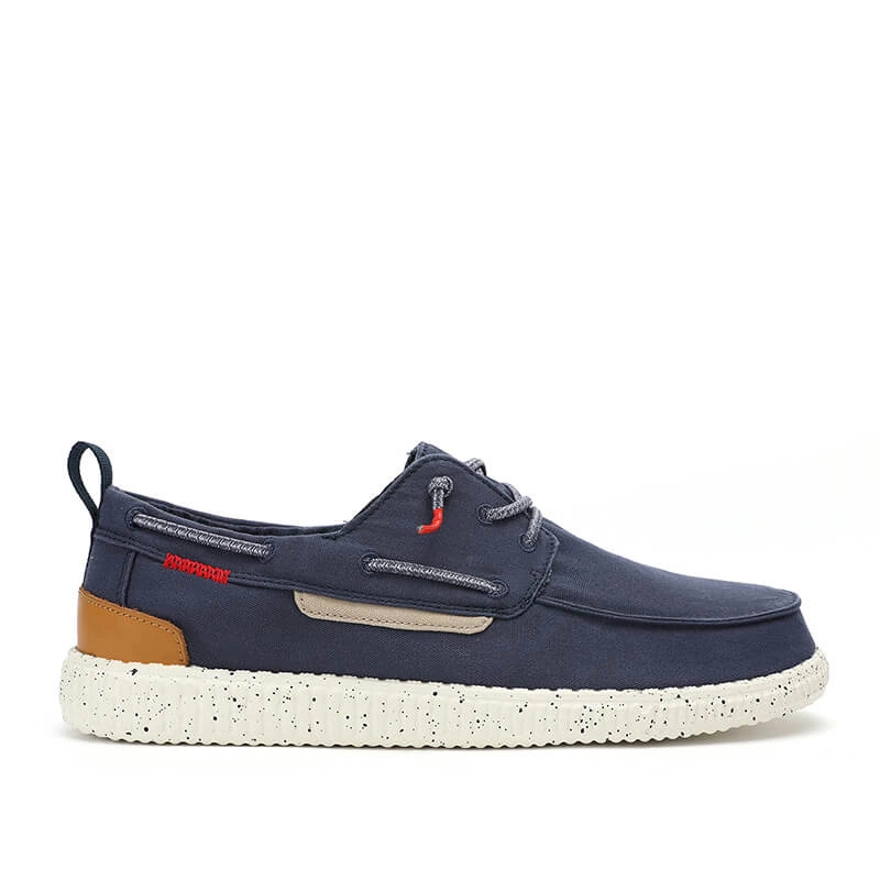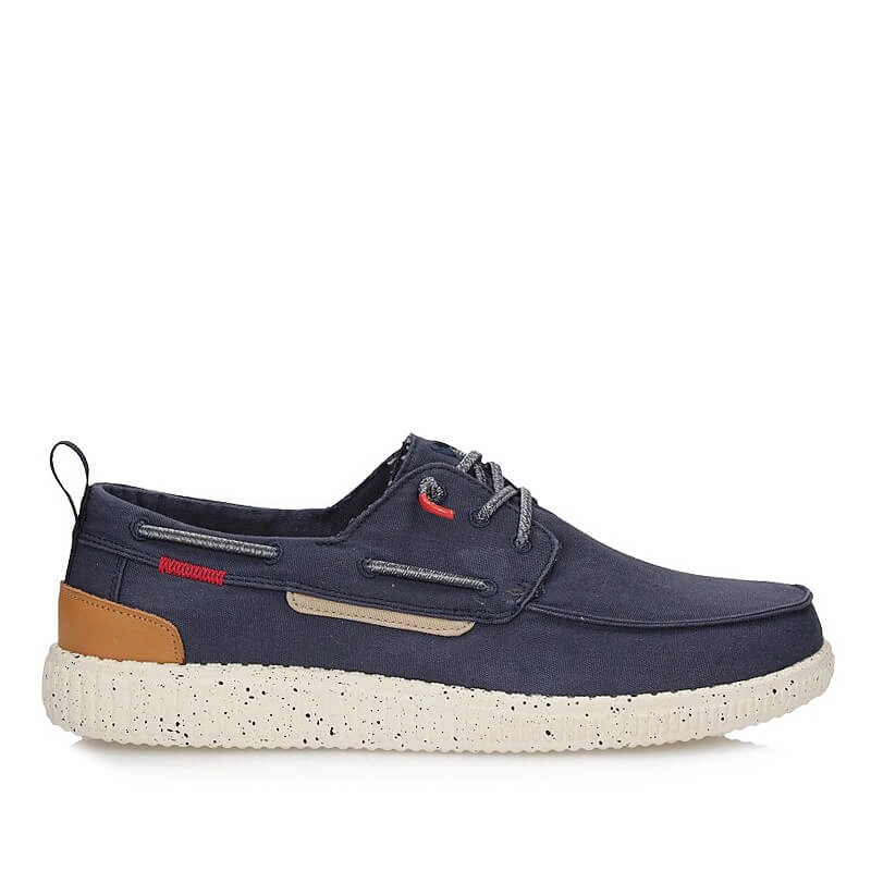 Półbuty marki Pitas pochodzące z najnowszej kolekcji. Cholewka buta została wykonana z wysokogatunkowego materiału tekstylnego, a wkładkę zrobiono ze skóry naturalnej. Półbuty są w odcieniu granatowym. Model jest wsuwany co ułatwia nam zakładanie i zdejmowanie go. Nosek zaokrąglony i lekko uniesiony ku górze. Podeszwa trwała i odporna na ścieranie.