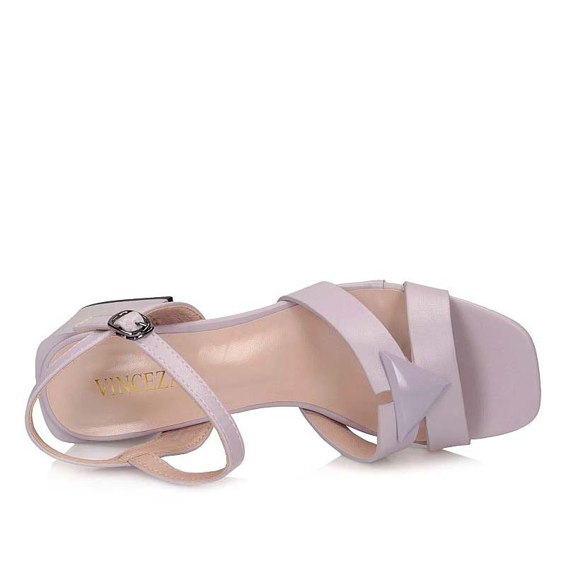 Sandały znanej marki Vinceza pochodzące z najnowszej kolekcji. Powyższy model w całości został wykonany ze skóry ekologicznej licowej w fioletowym odcieniu. Odkryty nosek pozwoli nam na wygodne rozłożenie palców. Wnętrze wyściełano przyjemną dla stóp wkładką ze skóry ekologicznej, która zapewni wygodę podczas całodziennego użytkowania. Obuwie zapinane na sprzączkę wokół kostki co pozwoli dopasować obuwie do różnej tęgości stopy. Całość osadzono na stabilnym 6 centymetrowym klocku. Podeszwa wykonana z wysokogatunkowego tworzywa sztucznego. Ciekawy model sandałków z pewnością spodoba się Paniom w każdym wieku.