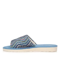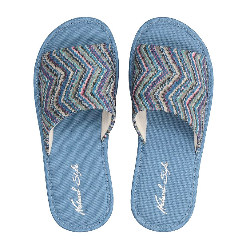 Kapcie znanej marki Meteor pochodzące z najnowszej kolekcji. Cholewka wykonana została z wysokogatunkowego materiału tekstylnego w pięknym odcieniu granatu jak i niebieskiego. wyściełany został w miękką dla stopy tkaninę. Nosek obuwia odkryty co pozwala swobodnie rozłożyć palce. Podeszwa wykonana została z wysokogatunkowego tworzywa sztucznego odpornego na ścieranie.