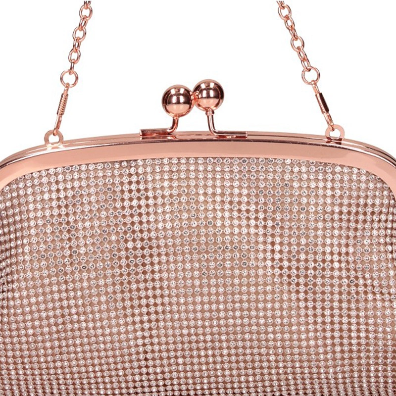 Elegancka torebka marki Michelle pochodząca z najnowszej kolekcji. Model w kolorze różowym wykonany z wysokogatunkowego tworzywa. Model błyszczy się na wiele kolorów przez cyrkonie. Torebka jednokomorowa zapinana na bigiel. Model możemy nosić w ręku jak i na ramieniu dzięki łańcuszkowi dołączonemu od producenta. Z pewnością przypadnie do gustu wielu panią i nada się na każdy rodzaj imprezy.