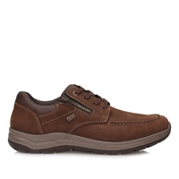 Półbut marki Rieker pochodzący z najnowszej kolekcji jesień-zima. Obuwie wykonane ze skóry naturalnej i ekologicznej nubukowej w brązowym odcieniu. Nosek zaokrąglony, lekko uniesiony ku górze pozwoli zwobodnie rozłożyć palce. Wkładka wykonana ze skóry naturalnej zapewniająca komfort podczas całodziennego użytkowania. Model sznurowany na 4 dziurki pozwoli dopasować obuwie do różnej tęgości stopy. Dodatkowym atutem obuwia jest umieszczony zamek po boku, który ułatwia nam na szybkie jak i łatwe zakładanie. Odporna na ścieranie podeszwa wykonana została z wysokogatunkowego tworzywa sztucznego z właściwościami antypoślizgowymi. Model obuwia wpadnie w gust wielu Panom.