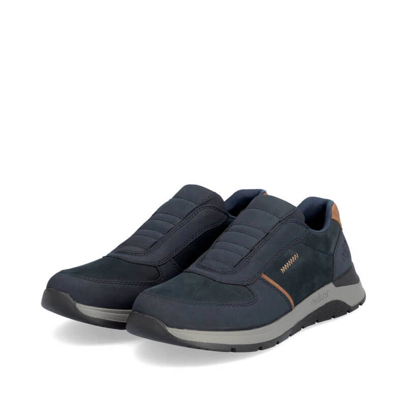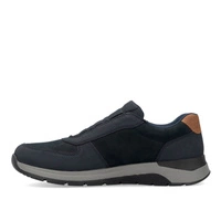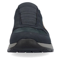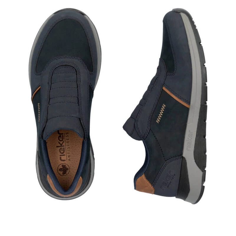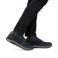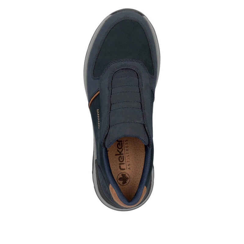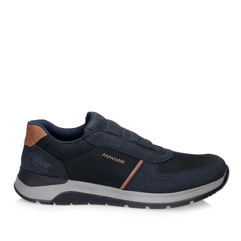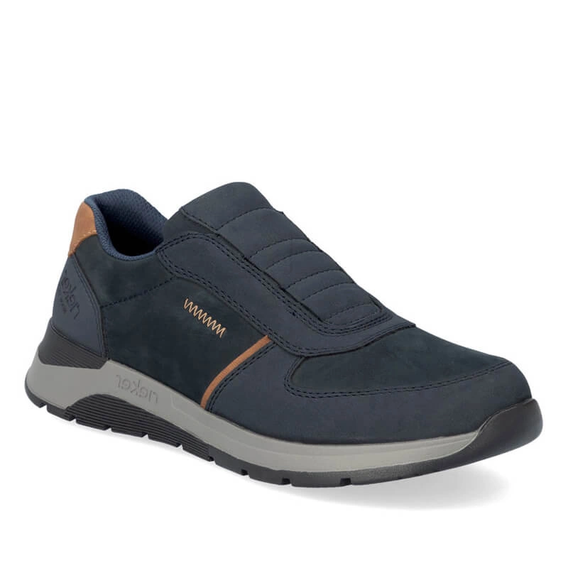Półbut męski Rieker pochodzący z najnowszej kolekcji jesień-zima. Model został wykonany z wysokiej jakości skóry ekologicznej nubukowej w niebieskim kolorze. Nosek obuwia zaokrąglony dość szeroki lekko podniesiony ku górze pozwala swobodnie rozłożyć palce. Wkładka została wykonana z miękkiej skóry naturalnej, która zapewni komfort podczas całodziennego użytkowania. Fason wsuwany, który umożliwi nam szybkie zakładanie oraz zdejmowanie obuwia. Podeszwa wykonana z wysokiej jakości tworzywa sztucznego z właściwościami antypoślizgowymi. Obuwie świetnie dopasuje się do wielu stylizacji.