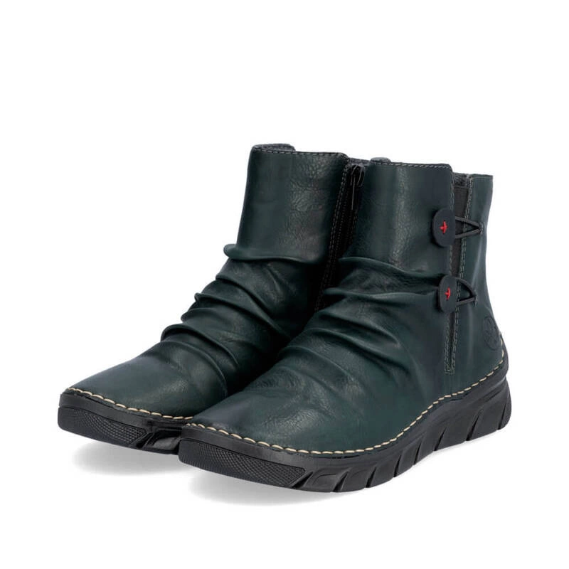 • Zielone Botki damskie zapinane na zamek Rieker 55052-54
