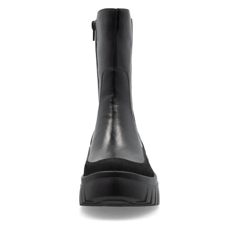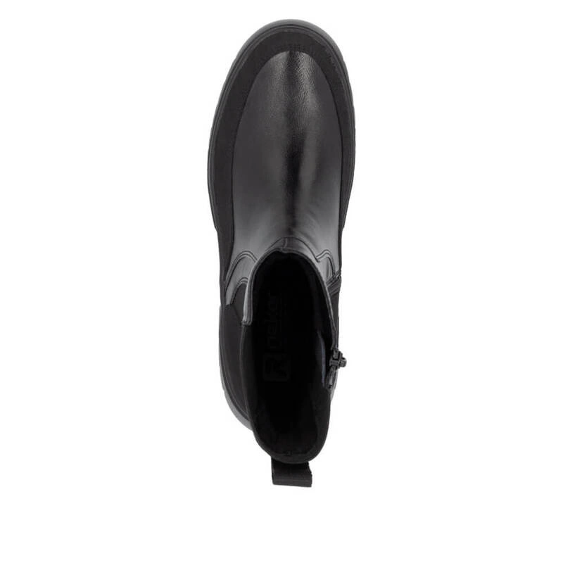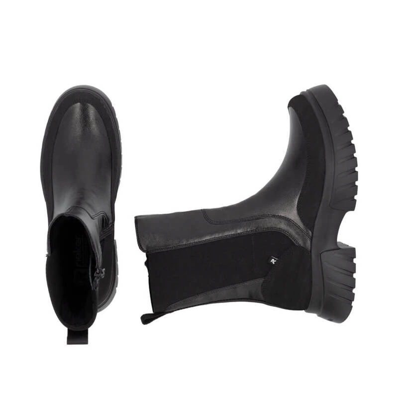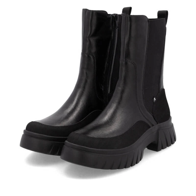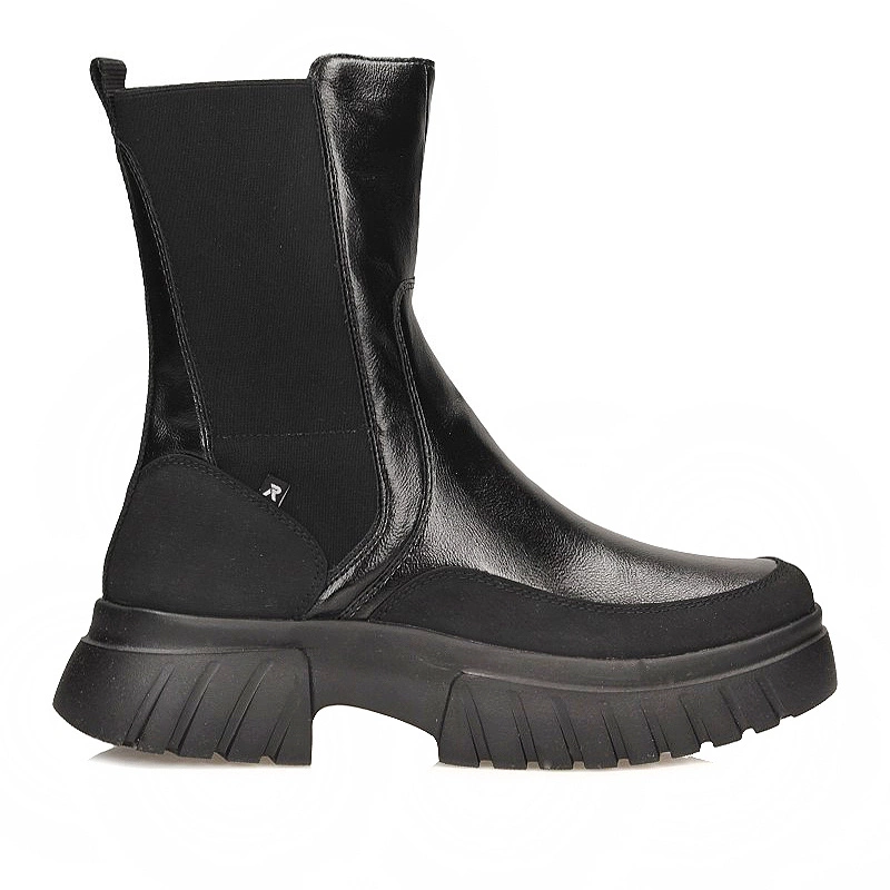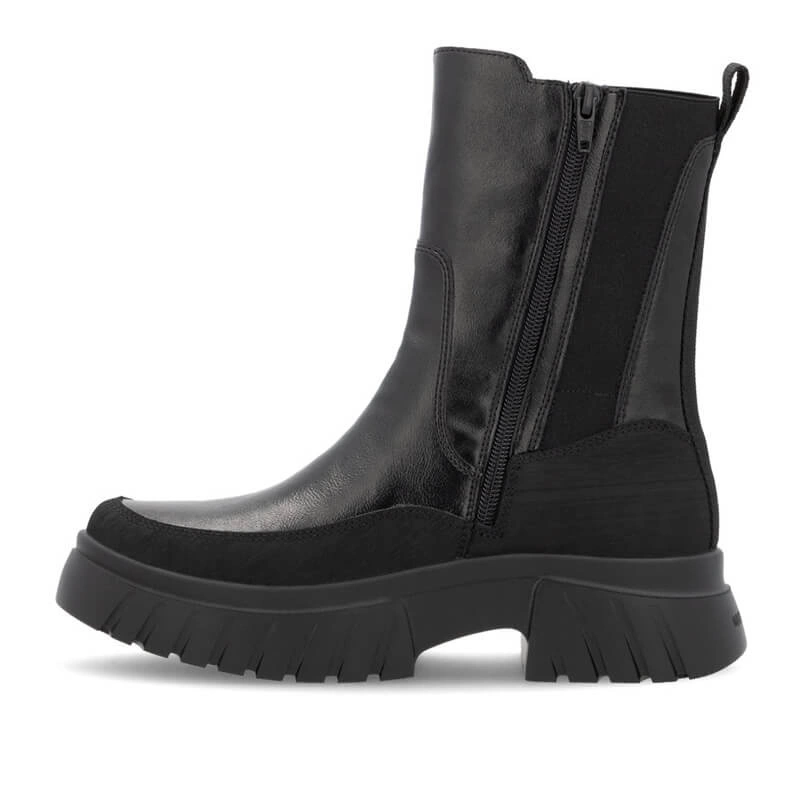 Znana oraz renomowana marka Rieker prezentuje nam botki z najnowszej kolekcji jesienno-zimowej. Cholewka wykonana ze skóry ekologicznej licowej w czarnym kolorze. Nosek szerszy, zaokrąglony i lekko uniesiony ku górze. Fason zapinany na boczny zamek, który ułatwi bezproblemowe zakładanie jak i zdejmowanie obuwia. Wnętrze buta wyściełane delikatną ociepliną, która dba o komfort cieplny w chłodne dni. Szeroki i stabilny obcas o wysokości cm. Podeszwa wykonana z wysokogatunkowego tworzywa odpornego na ścieranie. Klasyka połączona z nutą oryginalności sprawia, że obuwie staje się ponadczasowe i modne przez wiele sezonów.