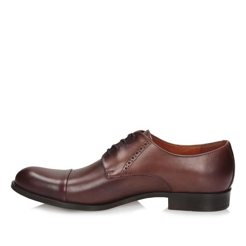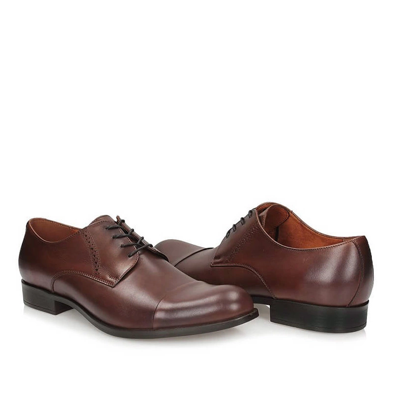 Eleganckie półbuty męskie przedstawia polska marka Conhpol. Cholewka wykonana została z wysokiej jakości skory naturalnej licowej w odcieniu brązu. Sznurowane na 4 dziurki, co pozwala na dopasowanie obuwia do tęgości stóp. Na wnętrze obuwia wraz z wkładką składa się skora naturalna, która odpowiada za wysoką wygodę oraz komfort obuwia. Nosek o delikatnie zaokrąglonym kształcie, podniesiony ku górze. Podeszwa wykonana z trwałego tworzywa sztucznego.