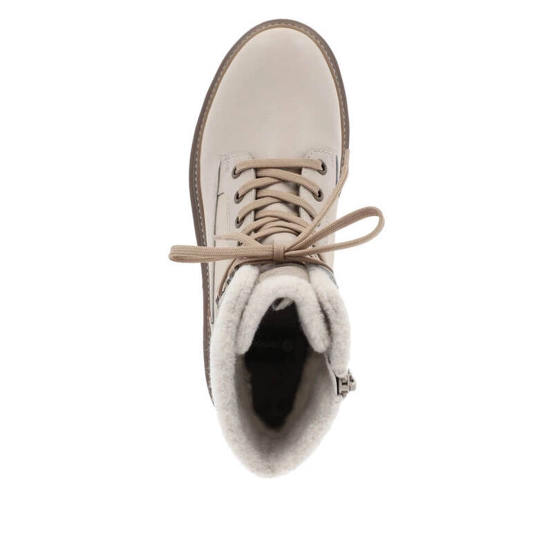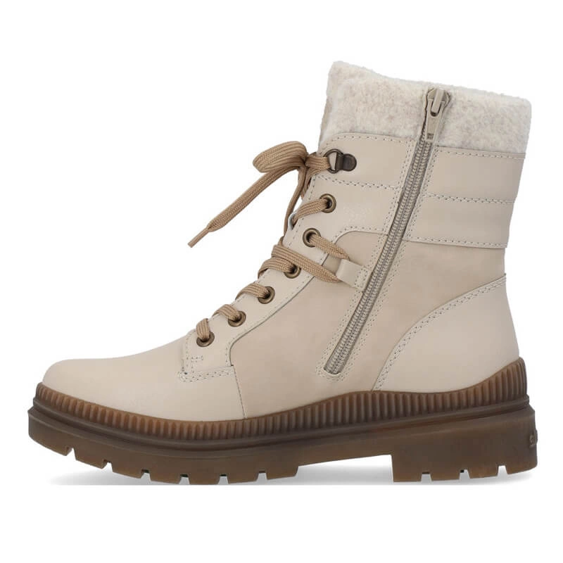 Beżowe botki damskie — skóra licowa i ocieplone wnętrze