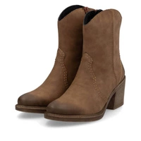 Botki damskie lubianej niemieckiej marki Rieker pochodzące z najnowszej kolekcji jesień-zima. Cholewka powstała ze skóry ekologicznej nubukowej w brązowym odcieniu. Model zapinany na zamek, który pomoże nam szybko zakładać obuwie. Nosek zaokrąglony, lekko uniesiony ku górze. Wnętrze tworzy wysokiej jakości ocieplina, która gwarantuje naszym stopom ciepło podczas zimowych spacerów. Stabilny obcas doda nam wdzięku i dodatkowych centymetrów. Podeszwa wykonana z tworzywa sztucznego z właściwościami antypoślizgowymi.