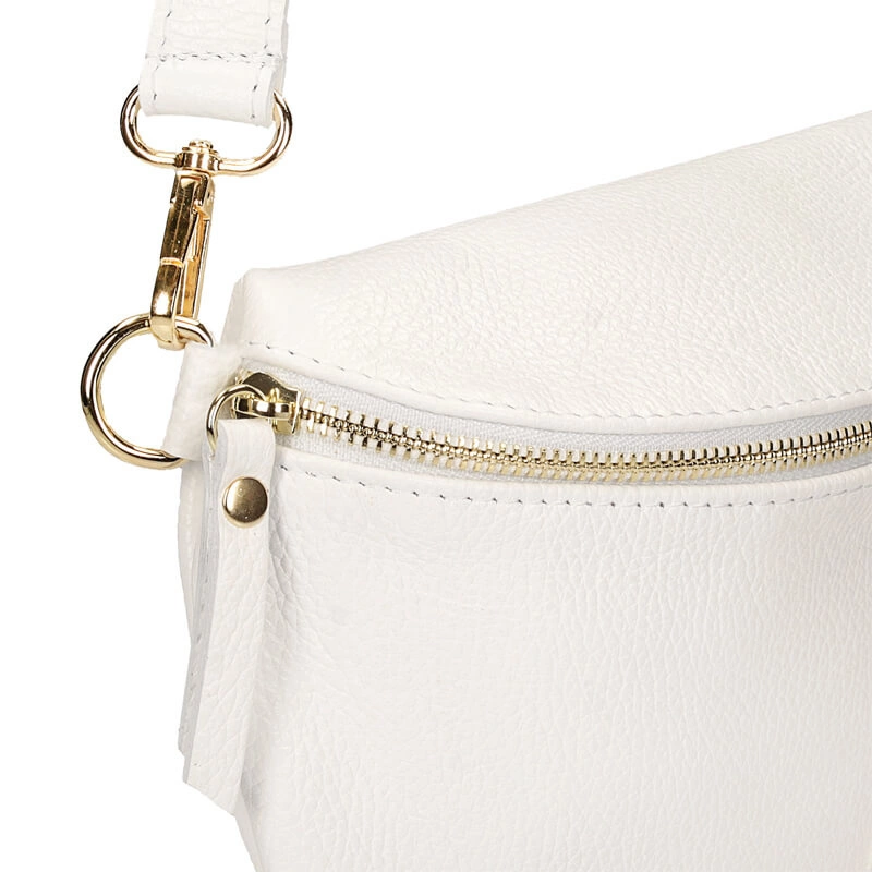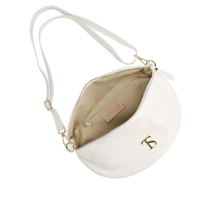 Znana jak i lubiana włoska marka Toscanio przedstawia nam nerkę w kolorze klasycznej bieli. Saszetka wykonana ze skóry naturalnej licowej.