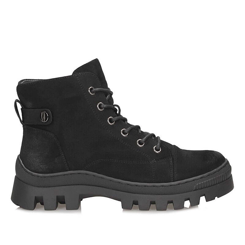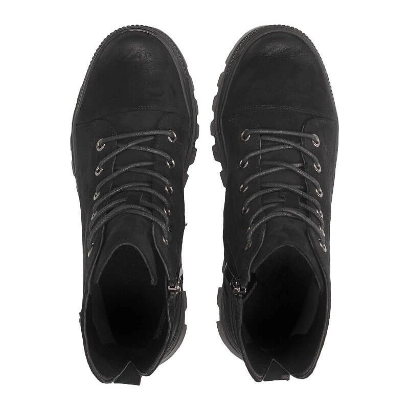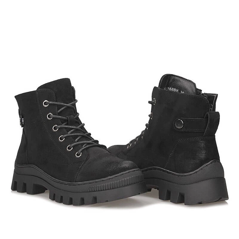 Botki znanej marki Potocki pochodzące z najnowszej kolekcji. Obuwie zostało wykonane z wysokogatunkowego tworzywa w odcieniu klasycznej czerni. Wnętrze wyściełane przyjemną w dotyku dla stopy tkaniną. Zapięcie na zamek pozwoli na swobodne zakładanie, jak i ściąganie obuwia. Nosek zaokrąglony, lekko uniesiony ku górze dzięki czemu swobodnie możemy rozłożyć palce. Całość opiera się niewysokim, 3 centymetrowym obcasie. Ciekawy model uzupełni wiele kobiecych stylizacji.