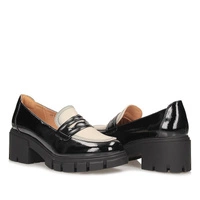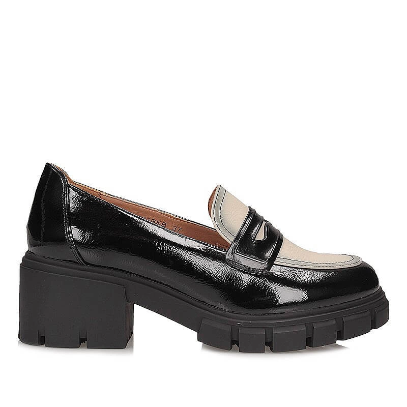 Lakierowane mokasyny Loafersy lordsy damskie na platformie Potocki 24-12401 BKB