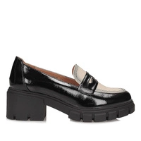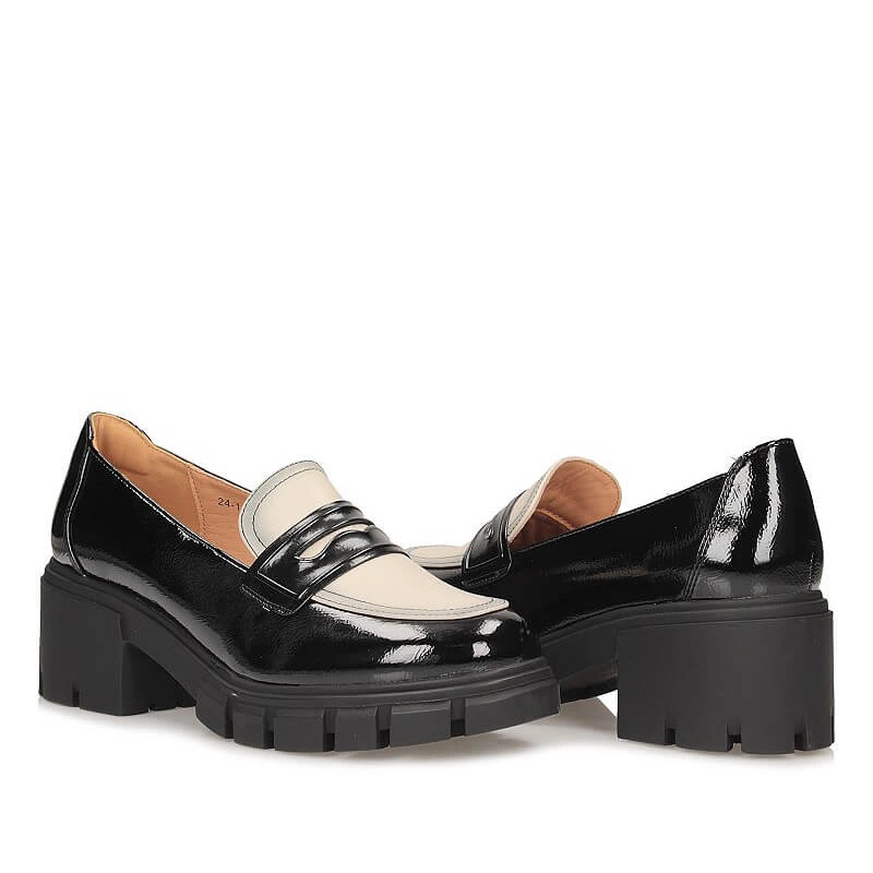 • Lakierowane mokasyny Loafersy lordsy damskie na platformie Potocki 24-12401 BKB