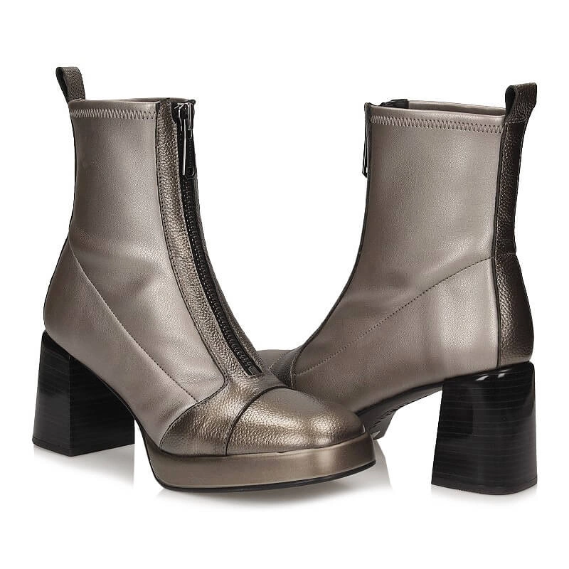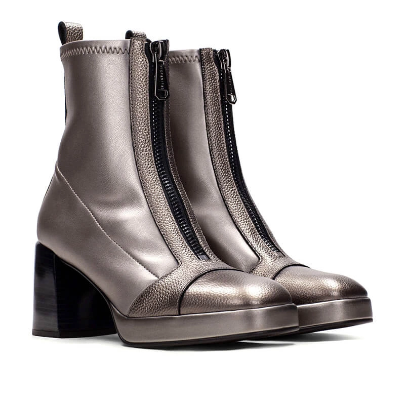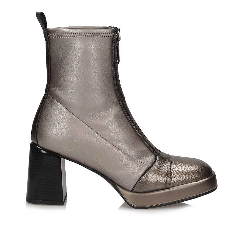 Nadaj swoim stylizacją modnego i eleganckiego wyglądu wraz z botkami hiszpańskiej marki Hispanitas. Cholewka prezentowanego modelu została wykonana z połączenia skóry naturalnej oraz wysokogatunkowego tworzywa. Do wykonania wkładki użyto wysokogatunkowej skóry ekologicznej. Model wyposażony w zamek umieszczony pośrodku cholewki pozwala na szybkie i wygodne zakładanie obuwia oraz pełni funkcje ozdobną. Osadzone na stabilnym obcasie typy słupek o wysokości 8 cm. Podeszwa wykonana z wysokogatunkowego tworzywa.