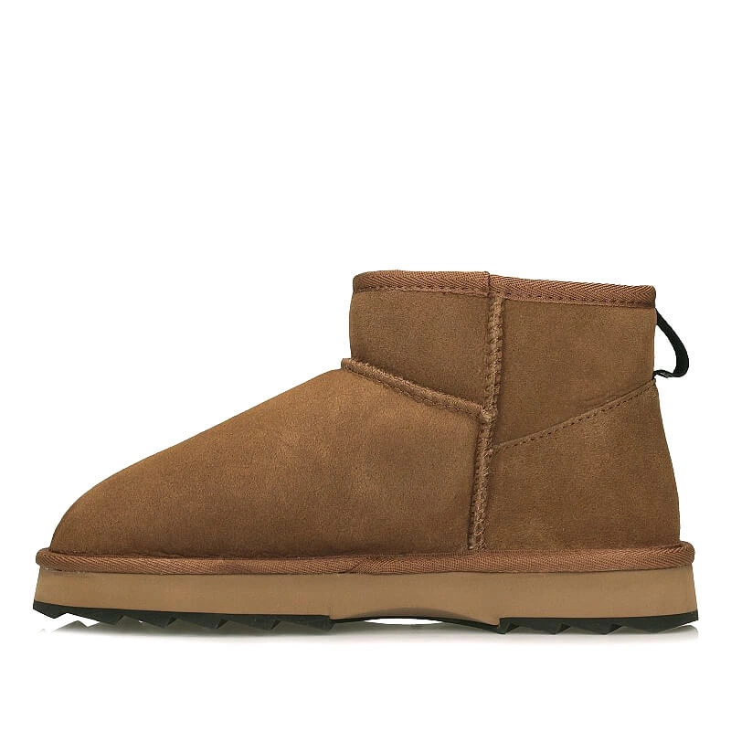 Śniegowce EMU Sharky Micro w odcieniu brązu. Model oryginalny, świetnie sprawdzi się w mroźne, zimowe dni. Cholewka wykonana ze skóry naturalnej(owczej), posiadająca właściwości wodoodporne i oddychające. Miękka i delikatna wyściółka została wykonana z owczej wełny, która zapewnia odpowiednią temperaturę i cyrkulację powietrza. Zapiętek został wzmocniony skórą naturalna zamszową i ma zapewnić odpowiednie wsparcie dla stopy. Opatentowana podeszwa wykonana w śniegowcach składa się z czterech warstw, które zapewniają wygodę, komfort oraz przyczepność do podłoża. Dodatkowo ich modny wygląd sprawia, że są perfekcyjnym uzupełnieniem każdej garderoby.