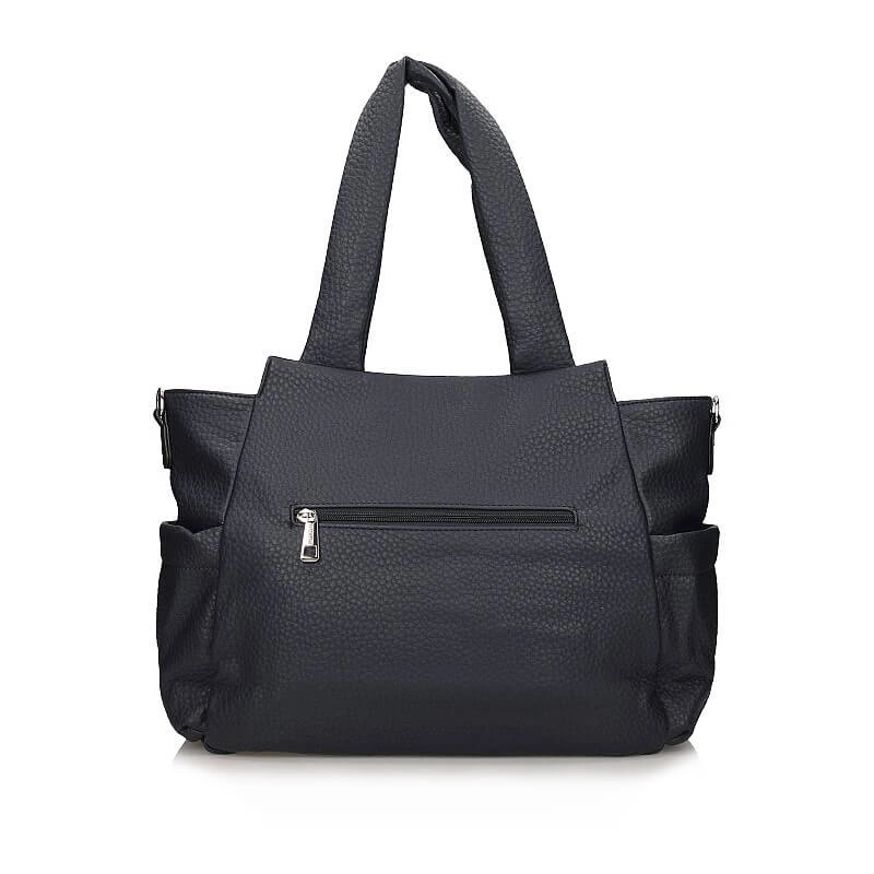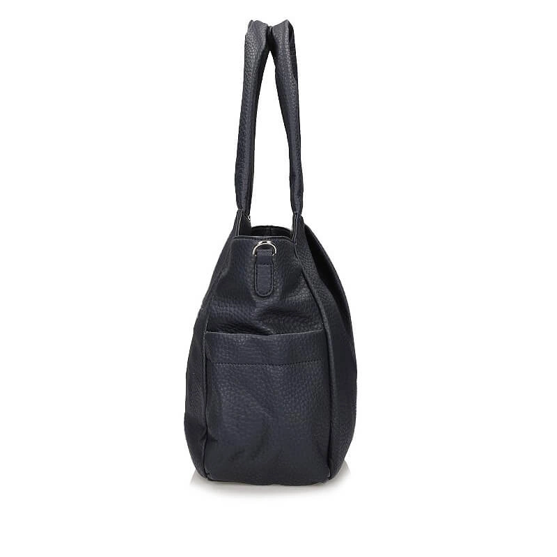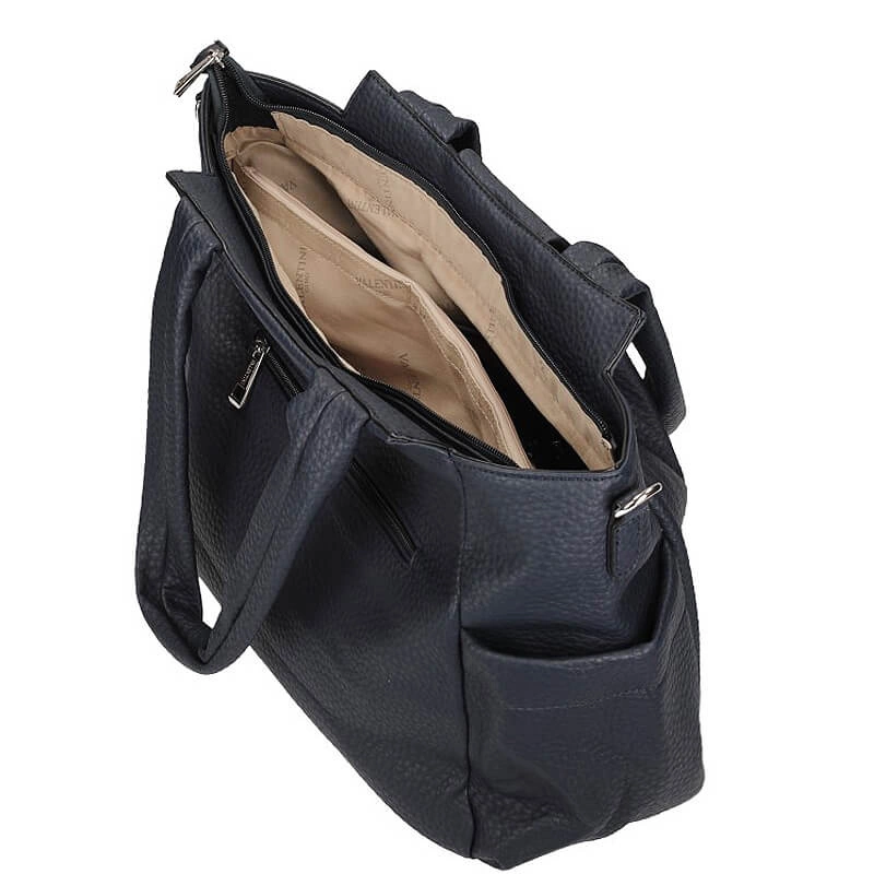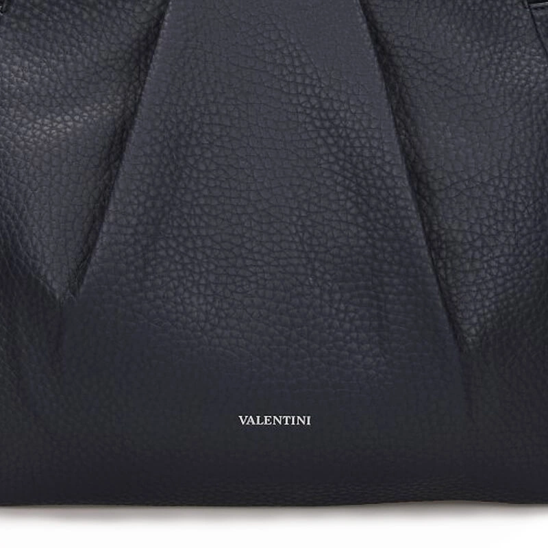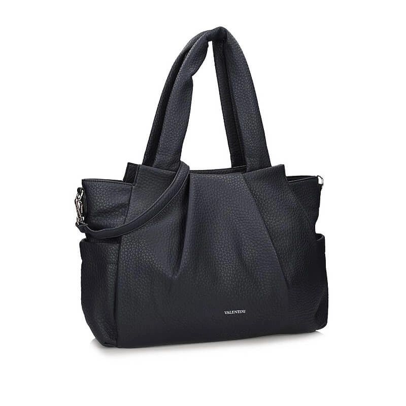 Marka Valentini przedstawia nam torebkę z najnowszej kolekcji. W pełni wykonana z wysokogatunkowej skóry ekologicznej licowej w granatowym odcieniu. Jednokomorowa zapinana na wygodny w użytkowaniu zamek. Wewnątrz torebki mieści się przegródka zapiana na zamek, która dzieli torebkę na dwie komory. Po bokach oraz z tyłu znajdują się dodatkowe kieszenie, które zapewne przydadzą się na kobiece drobiazgi. Model posiada długi, regulowany pasek.