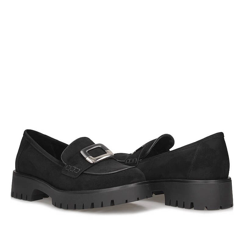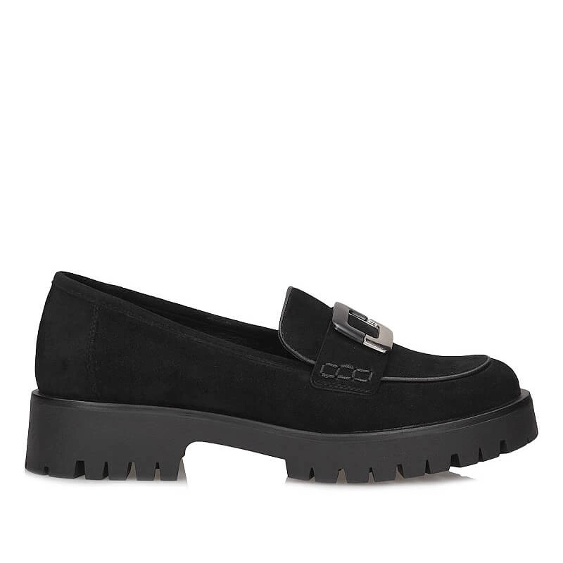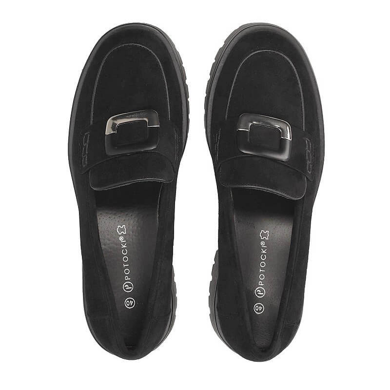 • Klasyczne mokasyny lordsy damskie na platformie Potocki 24-12420 BK Loafersy