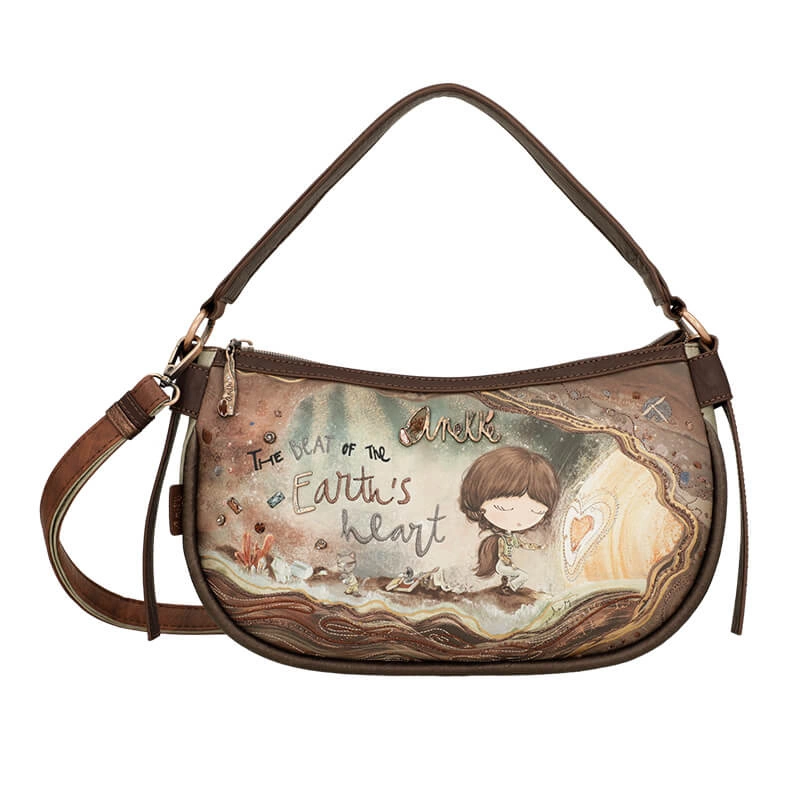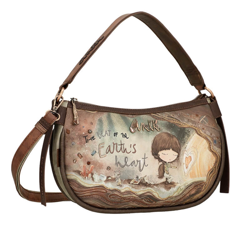 Torebka znanej i lubianej hiszpańskiej marki Anekke pochodząca z najnowszej kolekcji Core. Linia Anekke Core została stworzona dzięki inspiracji wybitną sejsmolożką Igne Lehmann, które dowiodła, że wnętrze Ziemi jest w części płynne i składa się z 4 warstw. Odkrycie to było wielkim wydarzeniem w nauce, gdyż do tej pory uważano, że Ziemia składa się tylko z trzech warstw i pustego rdzenia. Stąd też linia Core podzielona jest na 4 podkolekcje, w której ukazane są elementy charakterystyczne dla danej warstwy, są to: minerały, skamieniałości, różnorodność kolorów i tekstur. Model ten wykonano z wysokojakościowej skóry ekologicznej. Jednokomorowa, zapinana na zamek. Wewnątrz torebki umieszczono kieszonkę zapinaną na zamek oraz kieszonkę na telefon. Wygodne ramie pozwala na noszenie torebki na ramieniu. Do torebki dołączony również został długi, regulowany pasek. Z tyłu torebki znajduję się dodatkowa kieszonka zapinana na zamek.