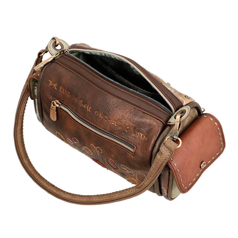 Modny kuferek torebka znanej marki Anekke pochodzący z najnowszej kolekcji Core. Linia Anekke Core została stworzona dzięki inspiracji wybitną sejsmolożką Igne Lehmann, które dowiodła, że wnętrze Ziemi jest w części płynne i składa się z 4 warstw. Odkrycie to było wielkim wydarzeniem w nauce, gdyż do tej pory uważano, że Ziemia składa się tylko z trzech warstw i pustego rdzenia. Stąd też linia Core podzielona jest na 4 podkolekcje, w której ukazane są elementy charakterystyczne dla danej warstwy, są to: minerały, skamieniałości, różnorodność kolorów i tekstur. Torebka została wykonana ze skóry ekologicznej. Model jednokomorowy, zapinany na zamek. Wewnątrz torebki umieszczono kieszonkę zapinaną na zamek oraz kieszonkę na telefon. Wygodna raczka umożliwia noszenie jej w ręku jak i na ramieniu. Dodatkowo producent dołączył do torebki długi, regulowany pasek. Po bokach torebki umieszczono ciekawe, małe kieszonki, które zapinane są na magnes.