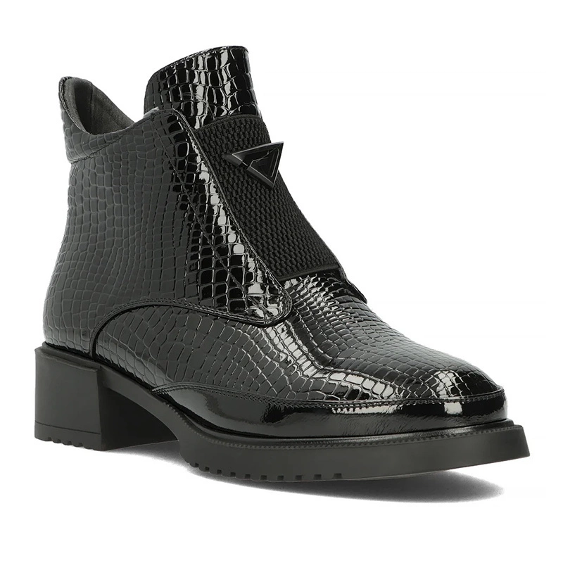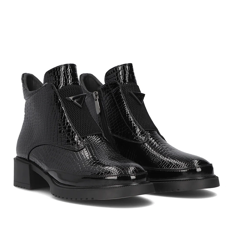 Skórzane botki na obcasie znanej marki Filippo pochodzące z najnowszej kolekcji. Materiał zewnętrzny obuwia wykonany został ze skóry naturalnej lakierowanej.