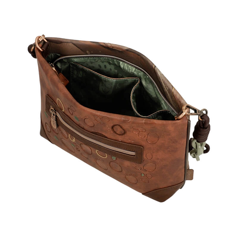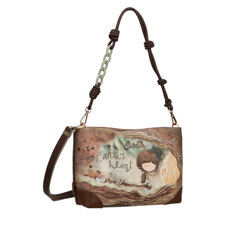 Torebka z kolekcji Core hiszpańskiej marki Anekke. Linia Anekke Core została stworzona dzięki inspiracji wybitną sejsmolożką Igne Lehmann, które dowiodła, że wnętrze Ziemi jest w części płynne i składa się z 4 warstw. Odkrycie to było wielkim wydarzeniem w nauce, gdyż do tej pory uważano, że Ziemia składa się tylko z trzech warstw i pustego rdzenia. Stąd też linia Core podzielona jest na 4 podkolekcje, w której ukazane są elementy charakterystyczne dla danej warstwy, są to: minerały, skamieniałości, różnorodność kolorów i tekstur. Do wyprodukowania tego modelu torebki użyto wysokiej jakości skóry ekologicznej. Jednokomorowa, zapinana na zamek. Wewnątrz torebki znajdziemy kieszonkę zapinaną na zamek oraz kieszonkę na telefon. Z tyłu torebki umieszczono kieszonkę zapinaną na zamek. Oryginalny pasek torebki to połączenie skóry oraz łańcucha co nadaję torebce jeszcze większej oryginalności. Dodatkowo producent dołączył długi, regulowany pasek wykonany całościowo ze skóry ekologicznej.