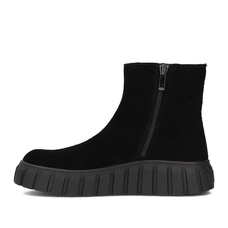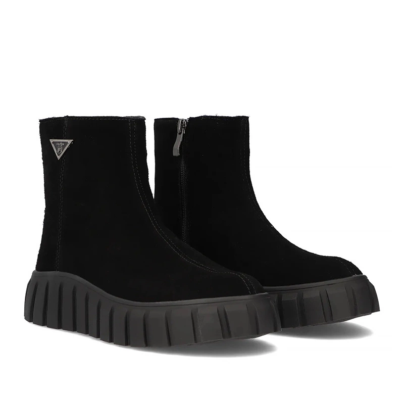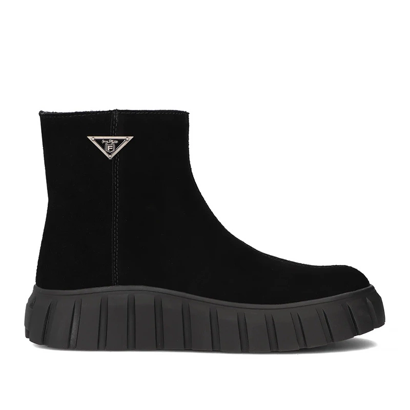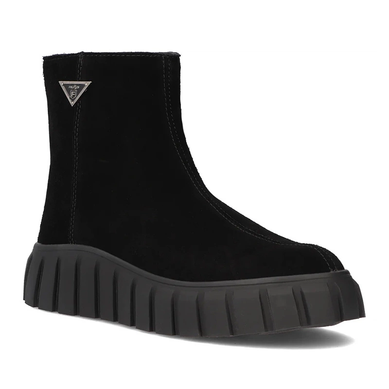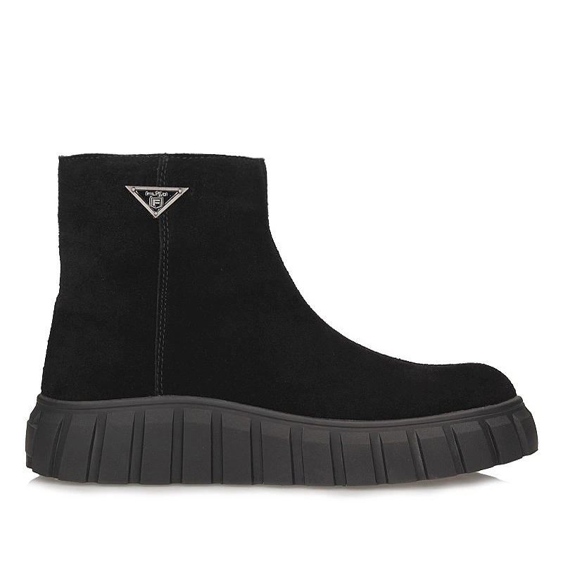 Skórzane botki na platformie znanej i lubianej marki Filippo pochodzące z najnowszej kolekcji. Obuwie wykonane ze skóry naturalnej zamszowej w klasycznym czarnym odcieniu.