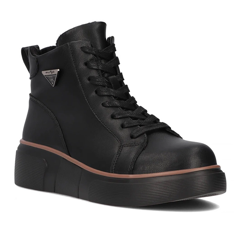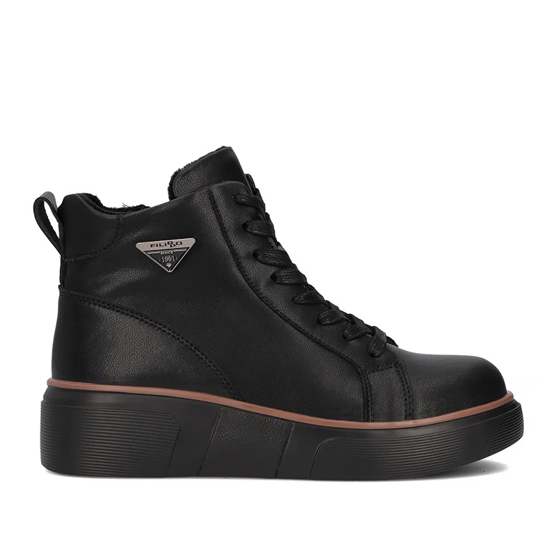 Skórzane botki na platformie znanej i lubianej marki Filippo pochodzące z najnowszej kolekcji. Materiał zewnętrzny obuwia wykonany ze skóry naturalnej licowej w klasycznej czarnej kolorystyce.