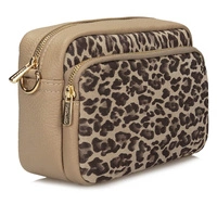 • Skórzana włoska Torebka listonoszka Toscanio F209 beżowa panterka