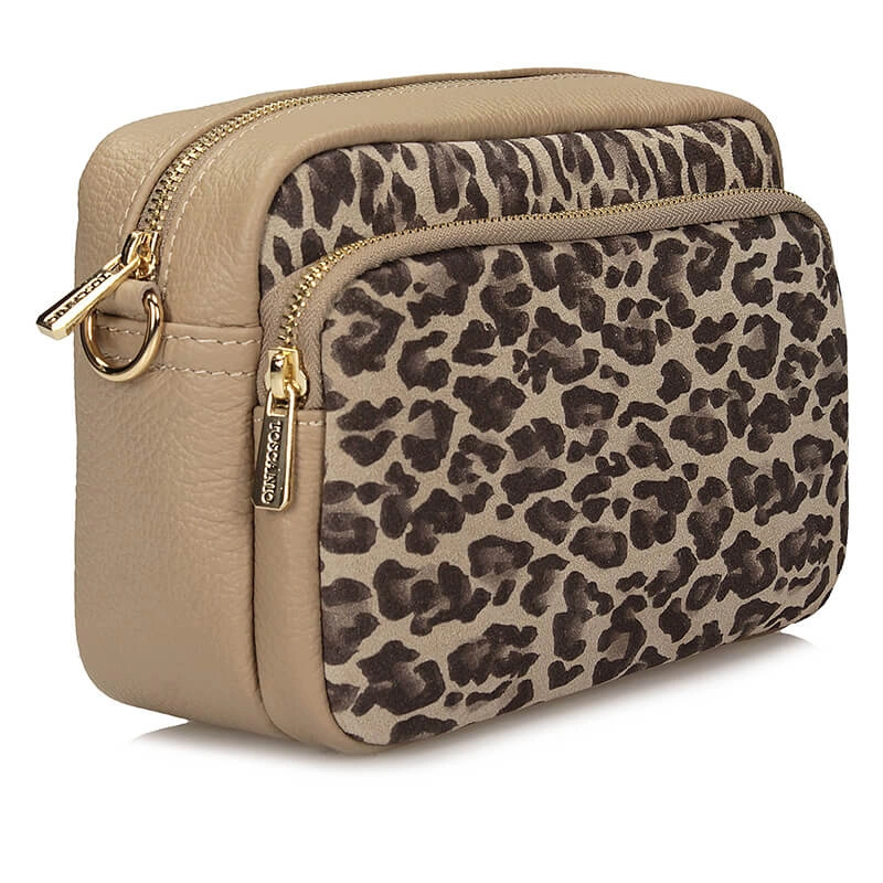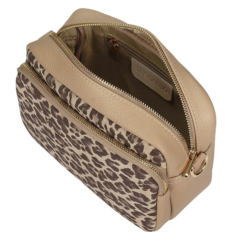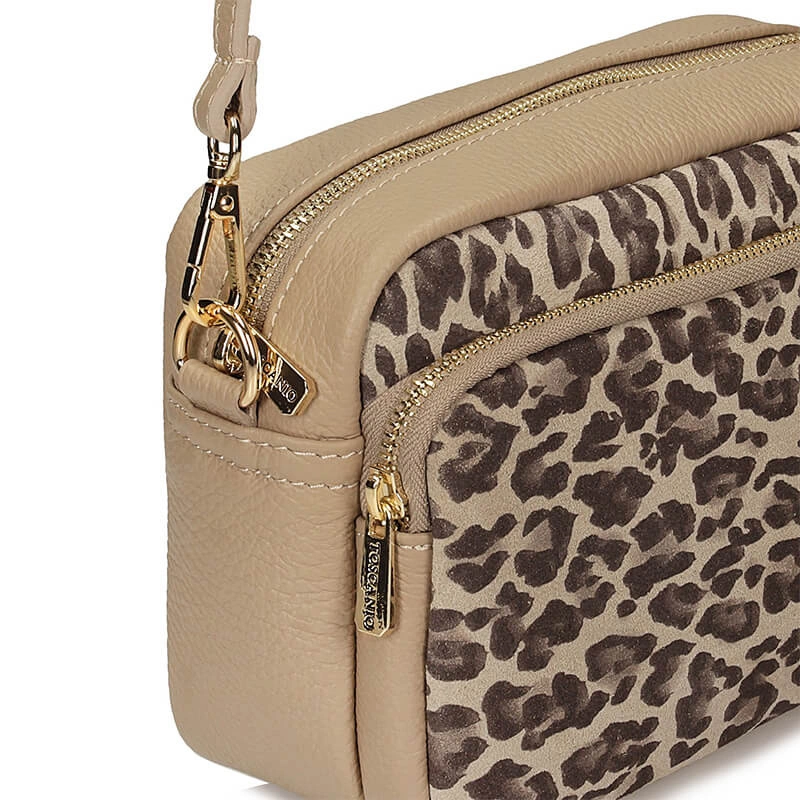 Skórzana włoska Torebka listonoszka Toscanio F209 beżowa panterka