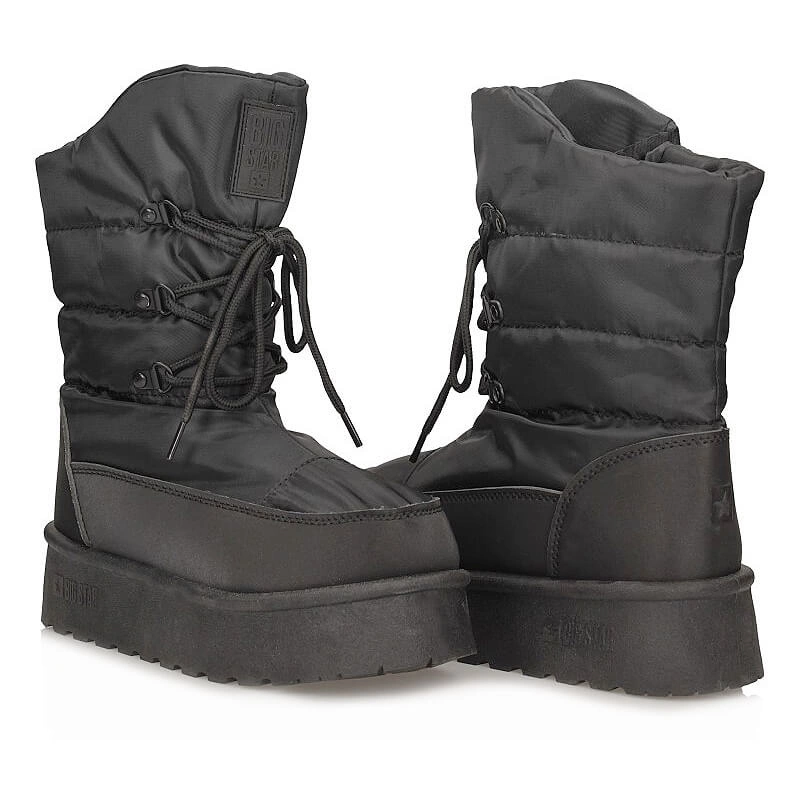 Damskie Botki śniegowce na platformie Big Star OO274884 czarne sznurowane