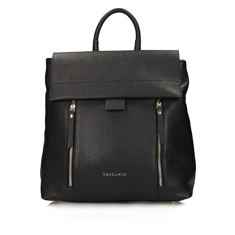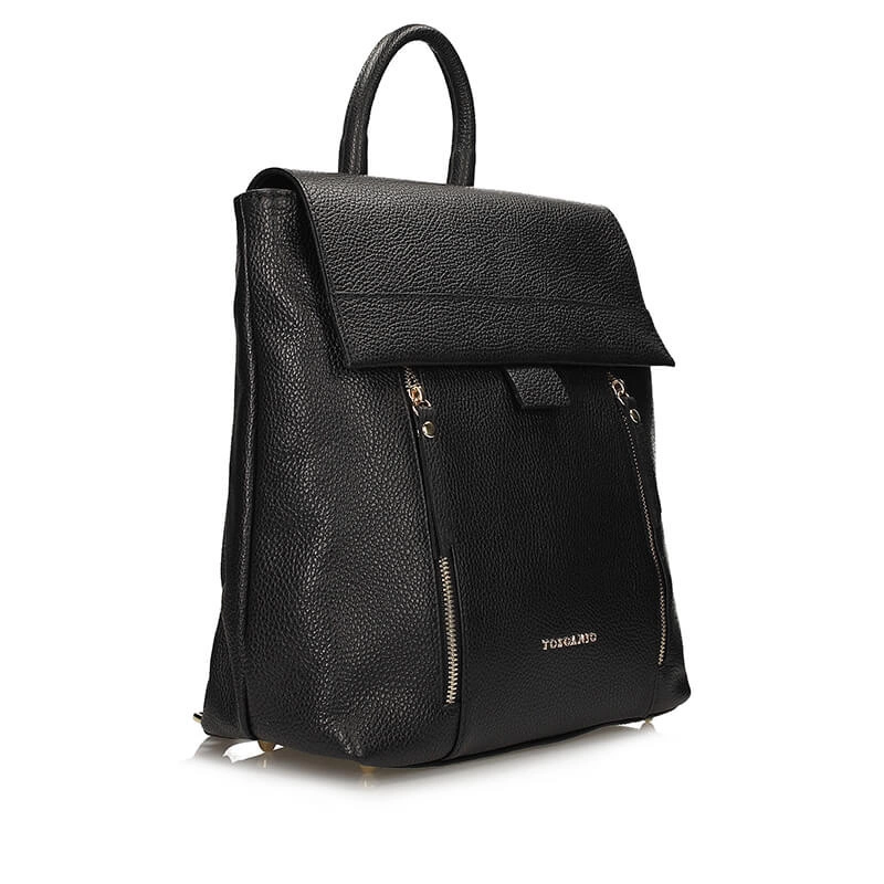 • Modny Skórzany Czarny Plecak Toscanio F267